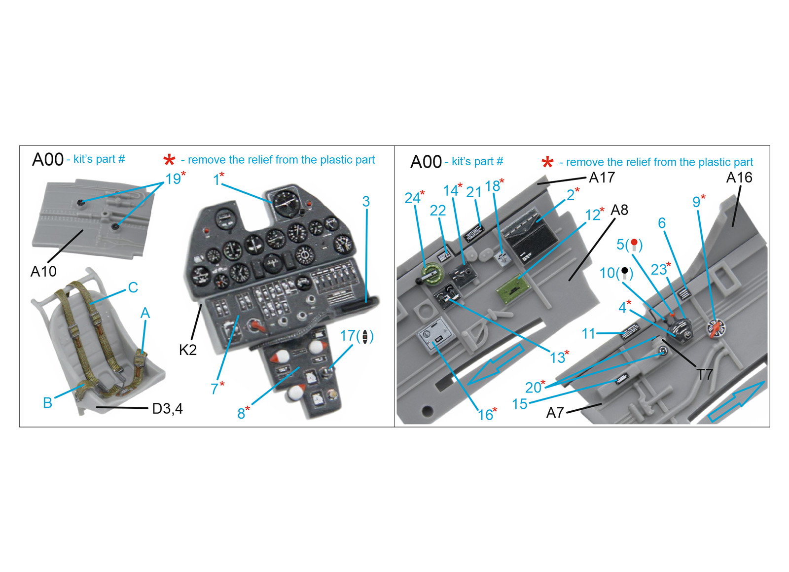 Quinta Studio - 1/48 Curtiss P-40E/P-40K Kittyhawk/Warhawk 3D-Printed & coloured Interior on decal paper (designed be used with Hasegawa kits)