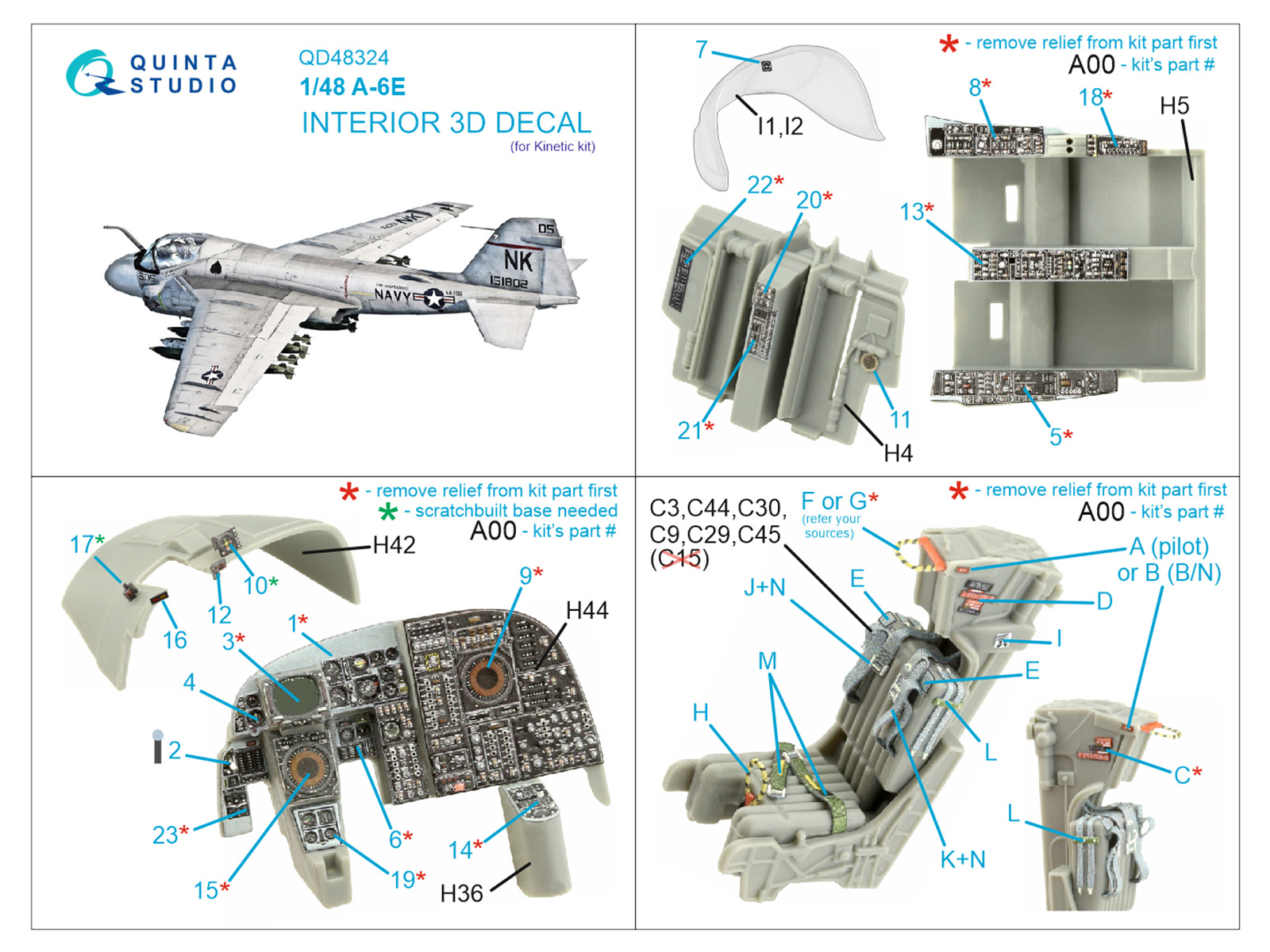 Quinta Studio - 1/48 A-6E Interior on decal paper for Kinetic