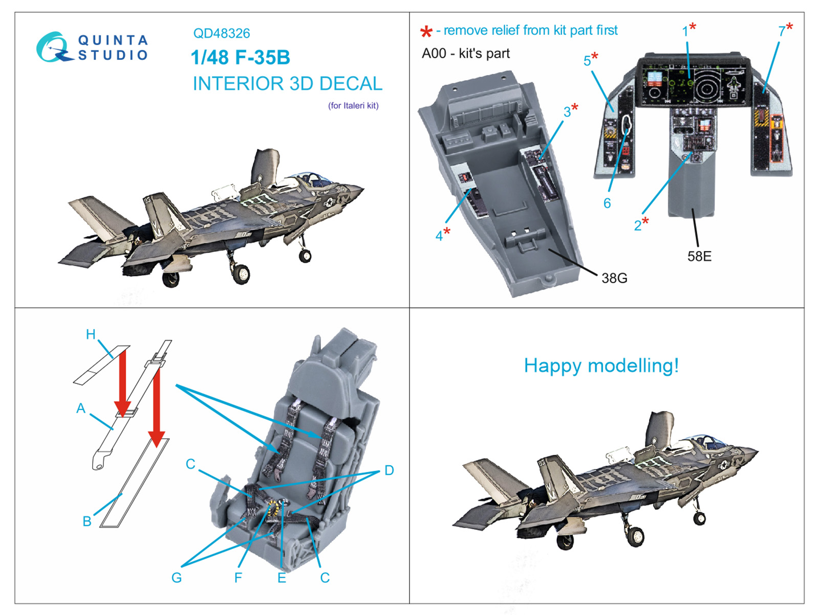 Quinta Studio - 1/48 Lockheed-Martin F-35B Lightning II 3D-Printed & coloured Interior on decal paper (for Italeri kits)
