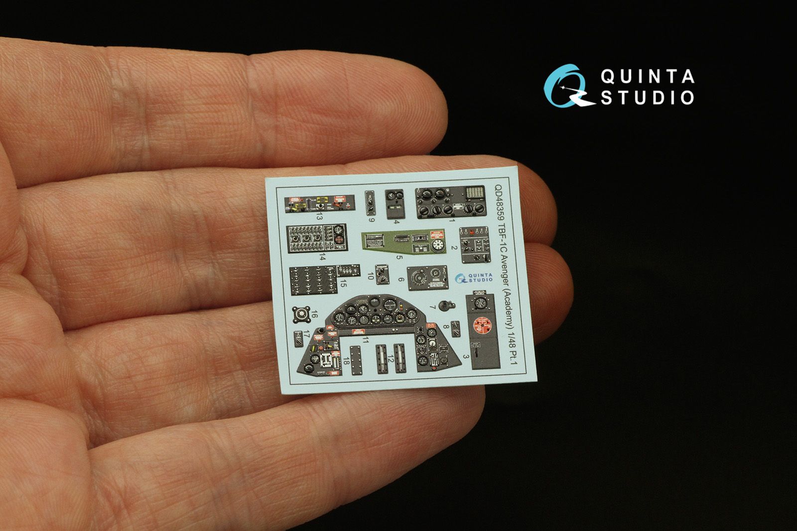 Quinta Studio - 1/48 Grumman TBF-1 Avenger 3D-Printed & coloured Interior on decal paper (for Academy, Accurate Miniatures and Italeri kits)