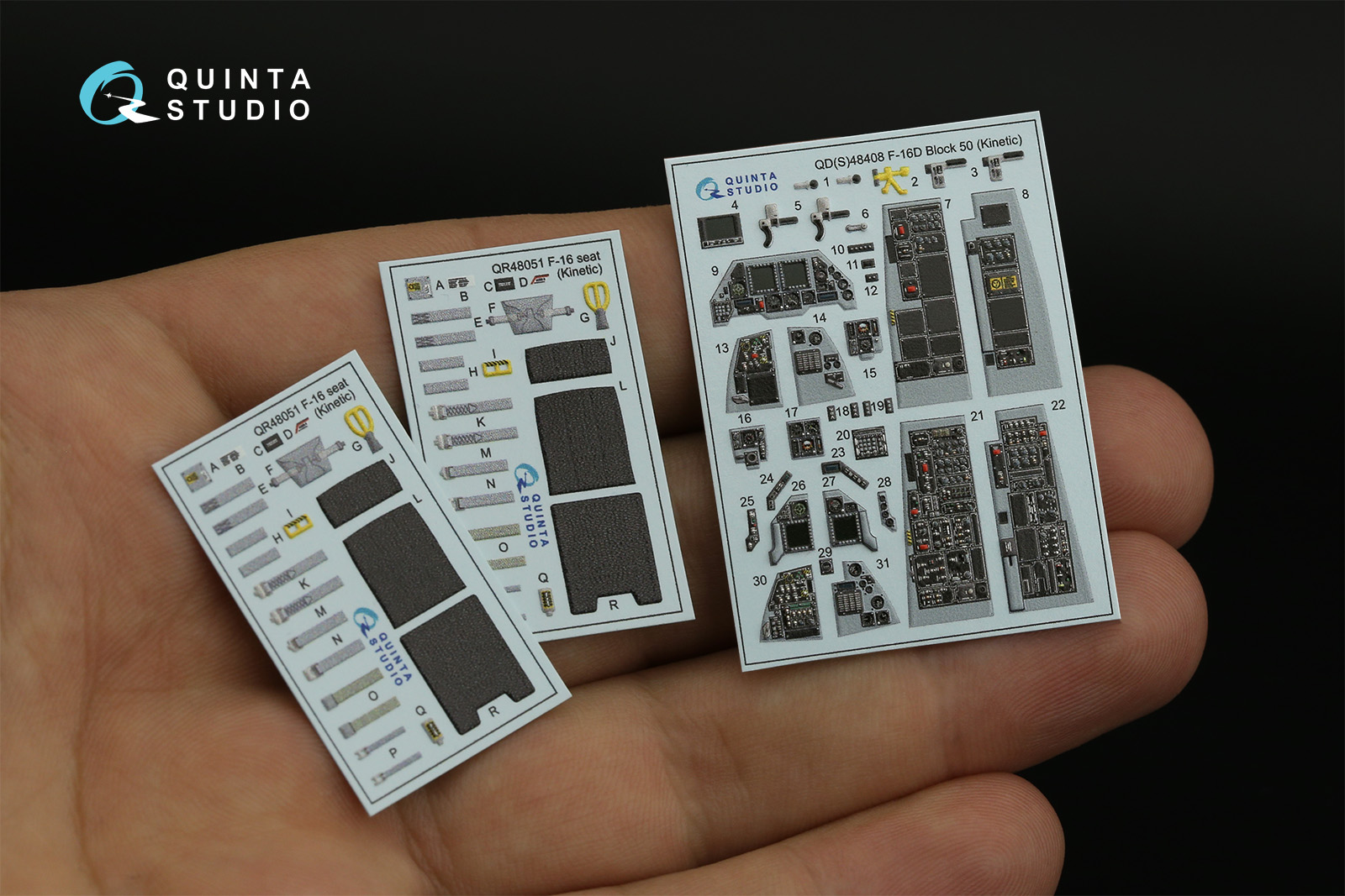 Quinta Studio - 1/48 Lockheed-Martin F-16D block 50 3D-Printed & coloured Interior on decal paper (for Kinetic Model 2022 tooled kits)