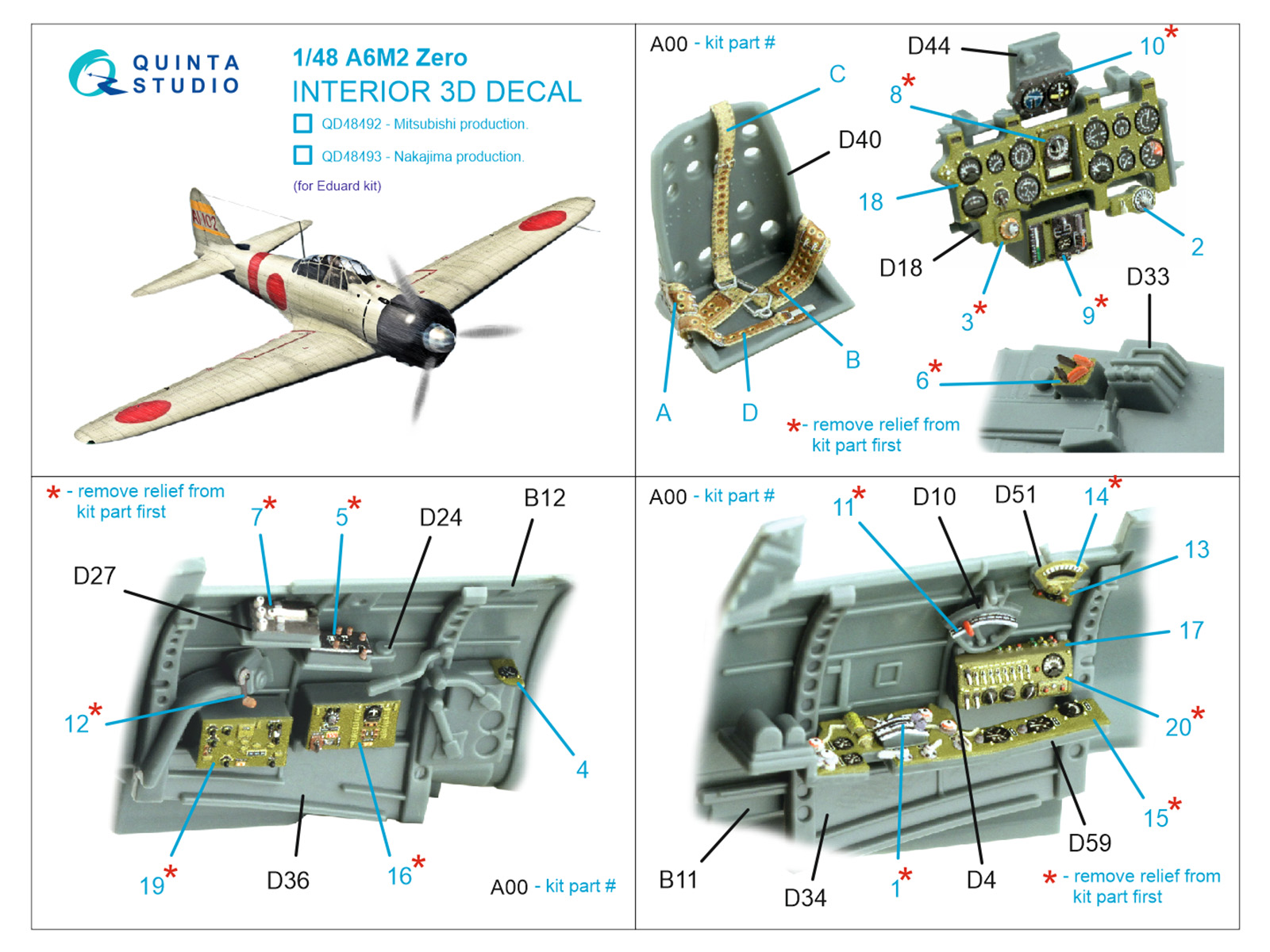 Quinta Studio - 1/48 A6M2 Zero Nakajima Production Interior for Eduard