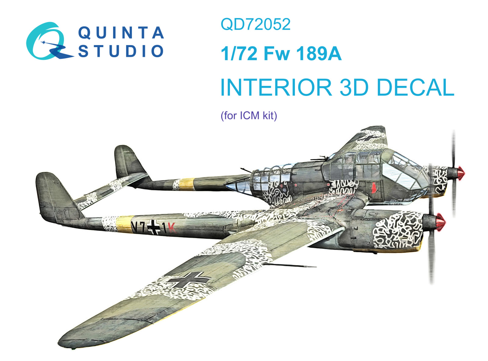 Quinta Studio - 1/72 Focke-Wulf Fw-189A-1 3D-Printed & coloured Interior on decal paper (for Icm kits)