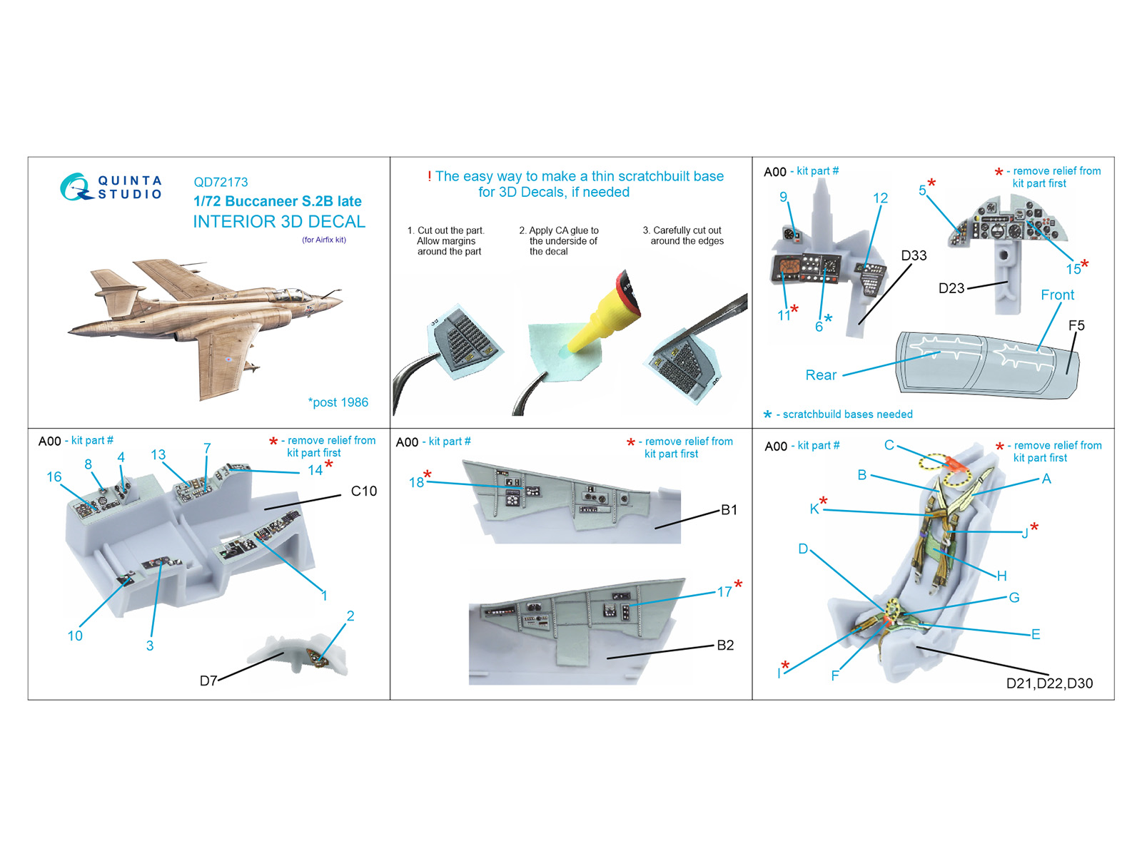 Quinta Studio - 1/72 Blackburn Buccanneer S.2B Late 3D-Printed coloured Interior for Airfix