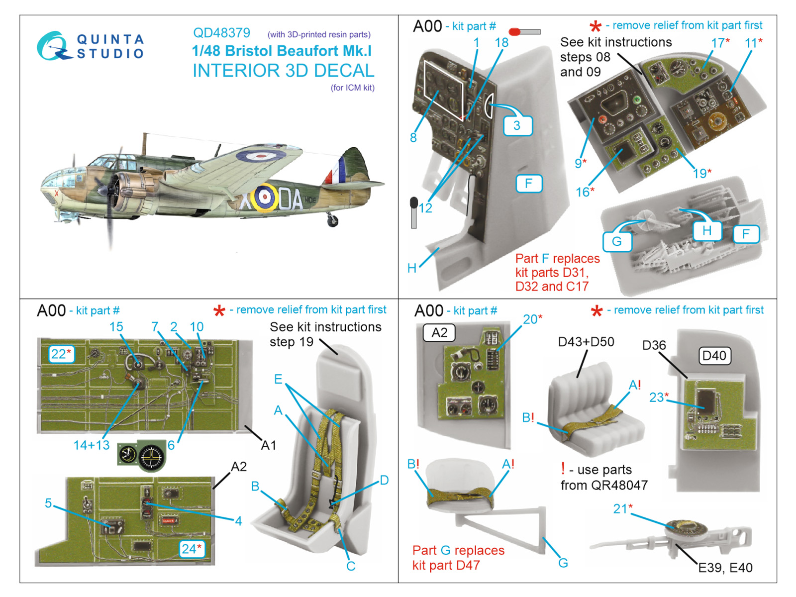 Quinta Studio - 1/48 Bristol Beaufort Mk.I Interior for ICM with 3D-printed resin parts