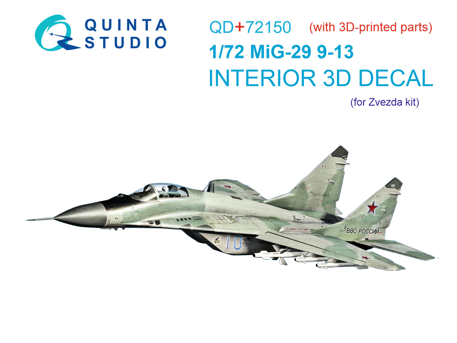 Quinta Studio - 1/72 Mikoyan MiG-29 9-13 3D-Printed coloured Interior (for Zvezda) (with 3D-Printed resin part)