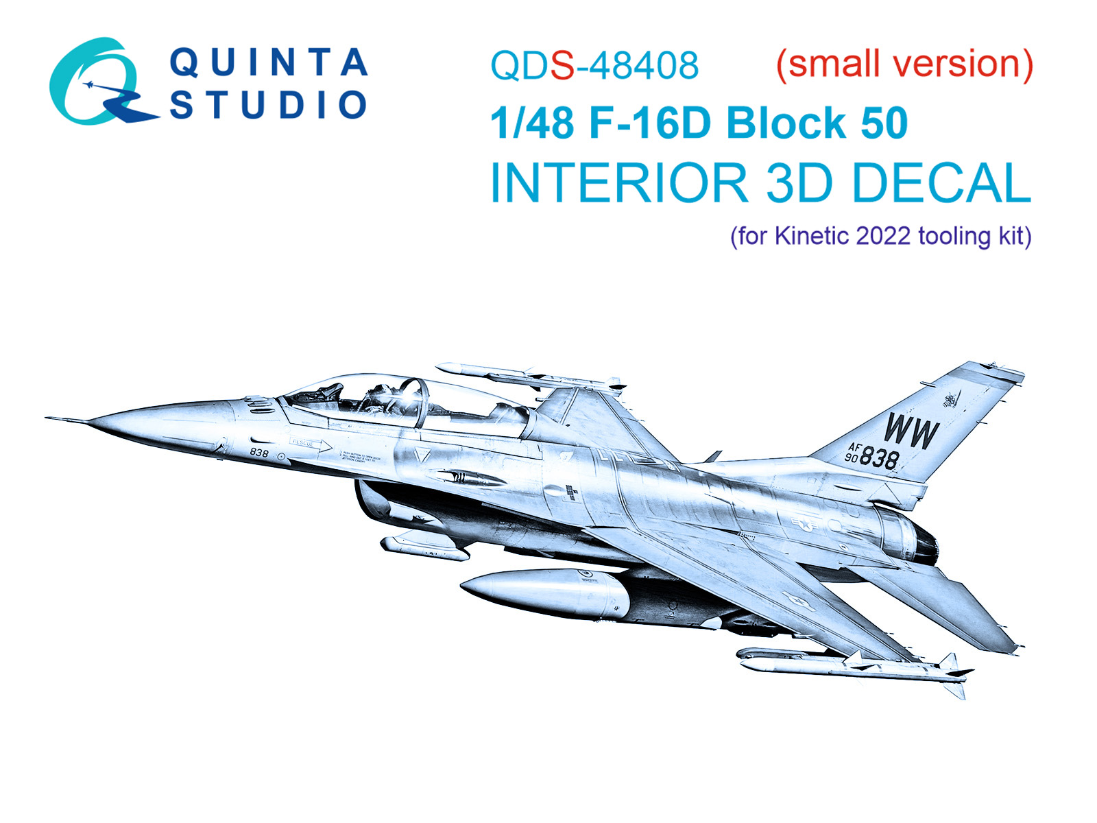 Quinta Studio - 1/48 F-16D block 50 Interior on decal paper for Kinetic 2022 tool for Small version
