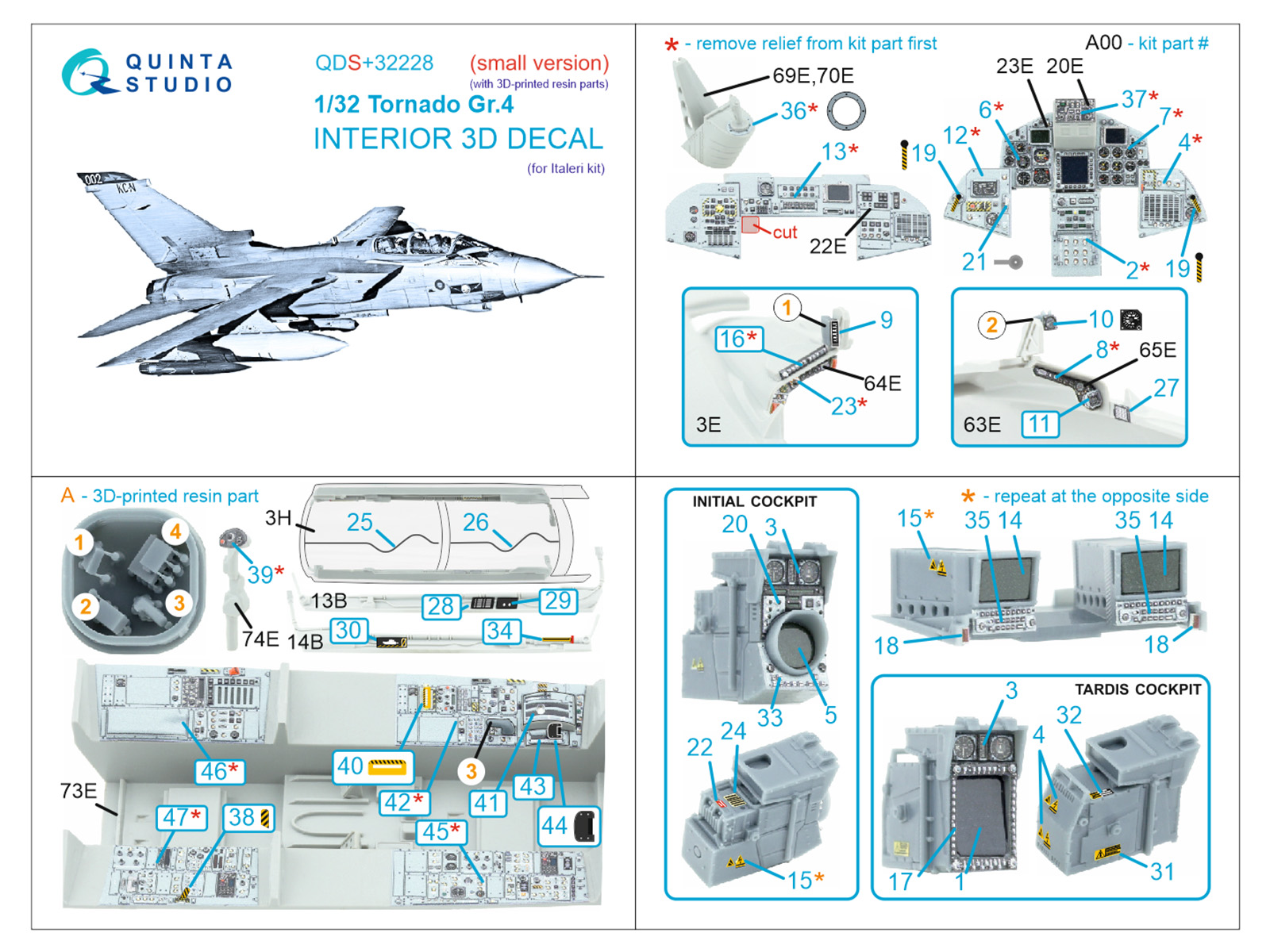 Quinta Studio - 1/32 Panavia Tornado Gr.4 3D-Printed & coloured Interior (for Italeri kits), Small version with 3D-printed resin parts