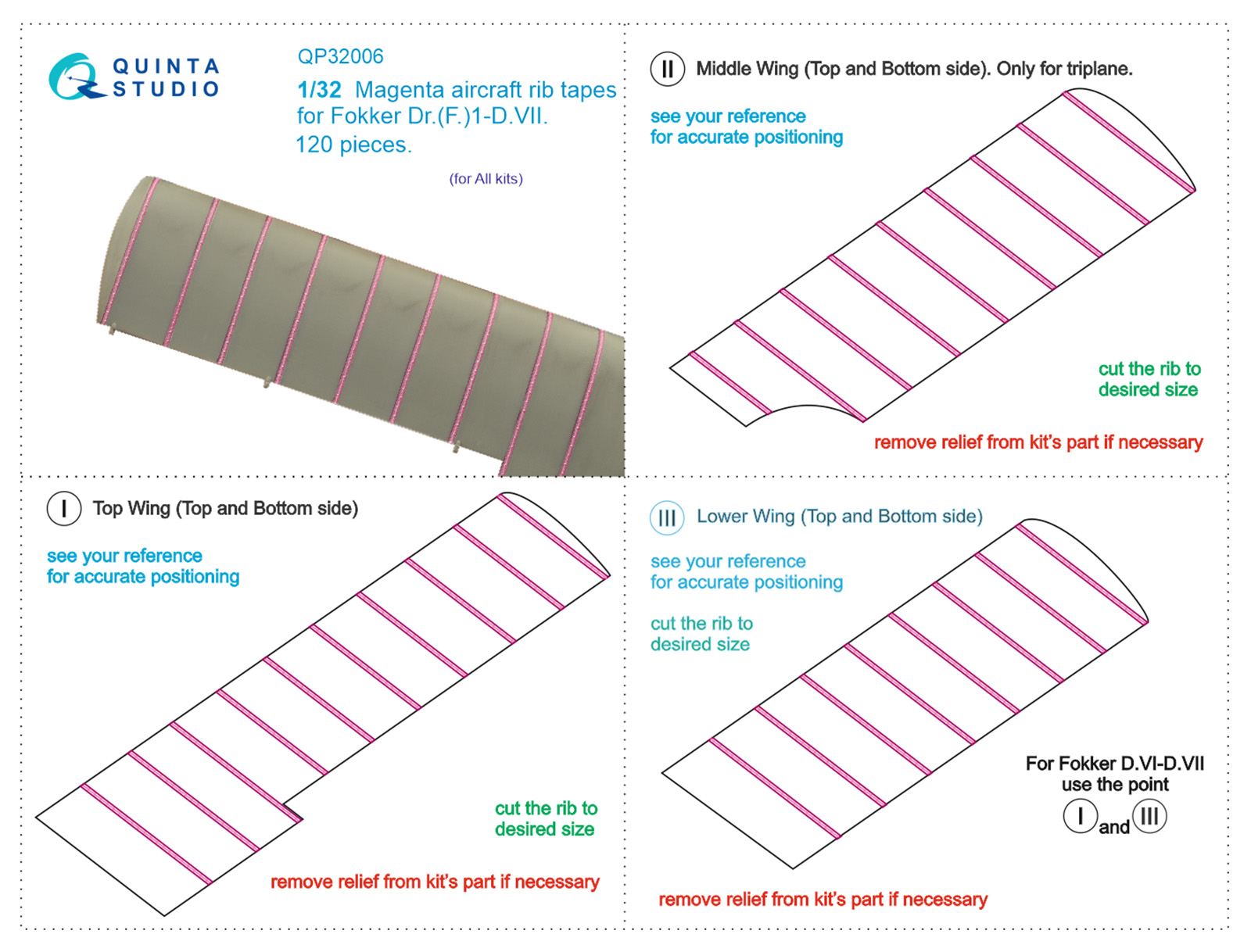 Quinta Studio - 1/32 Magenta rib tapes Fokker Dr. (F.)I-D.VII (All kits) (for Wingnut Wings kits)