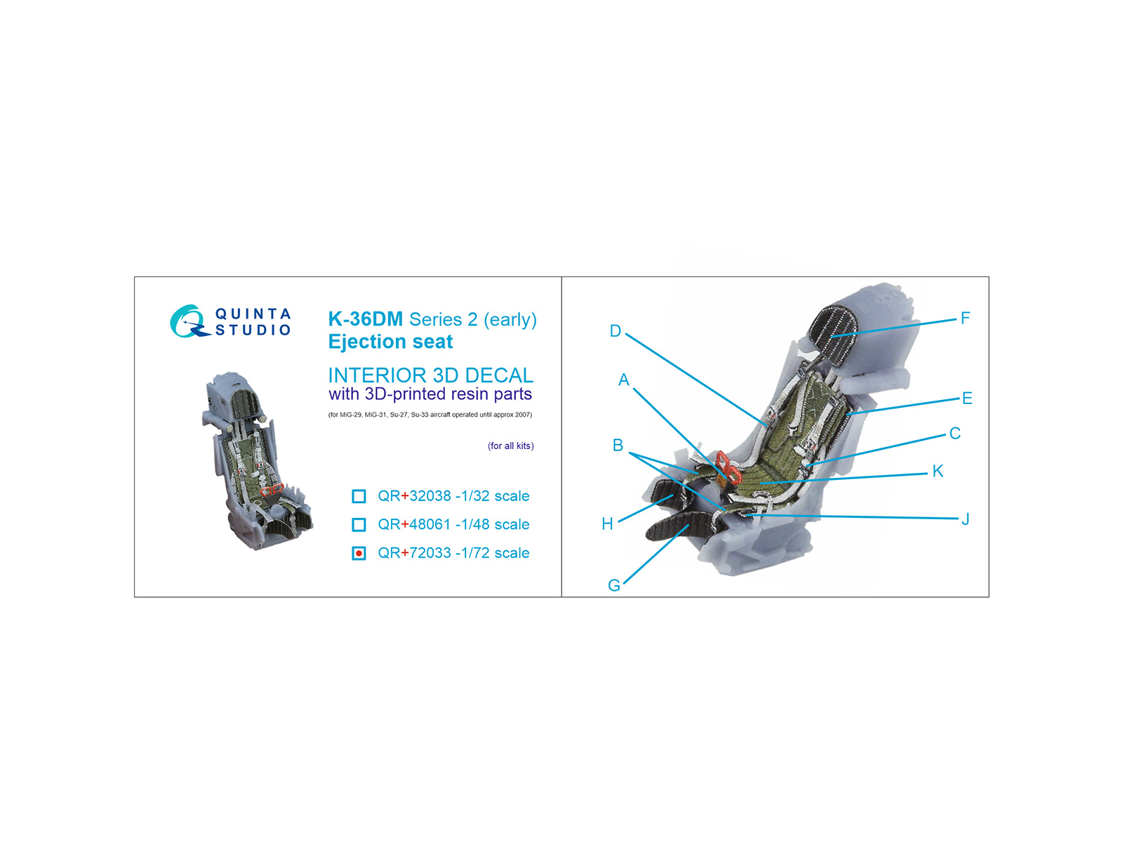 Quinta Studio - 1/72 K-36DM Series2 for early ejection seat for MiG-29, MiG-31, Su-27, Su-33 aircraft until 2007