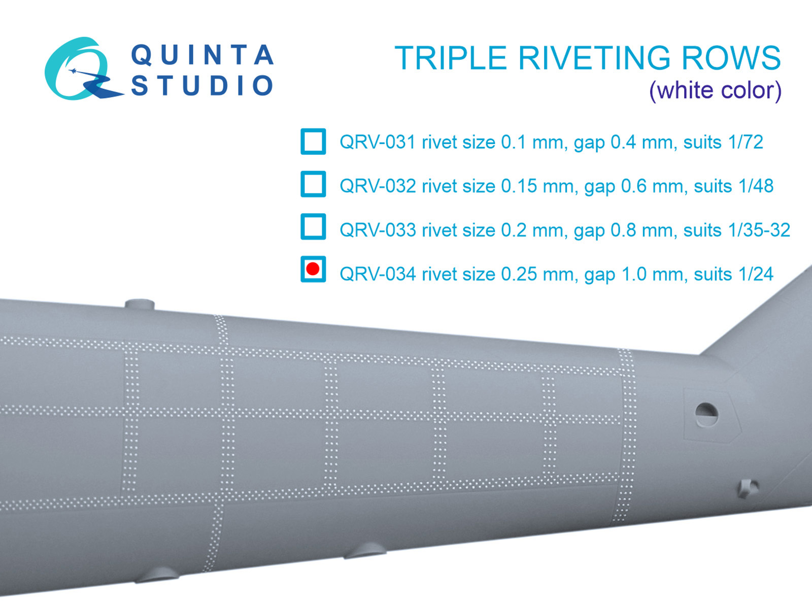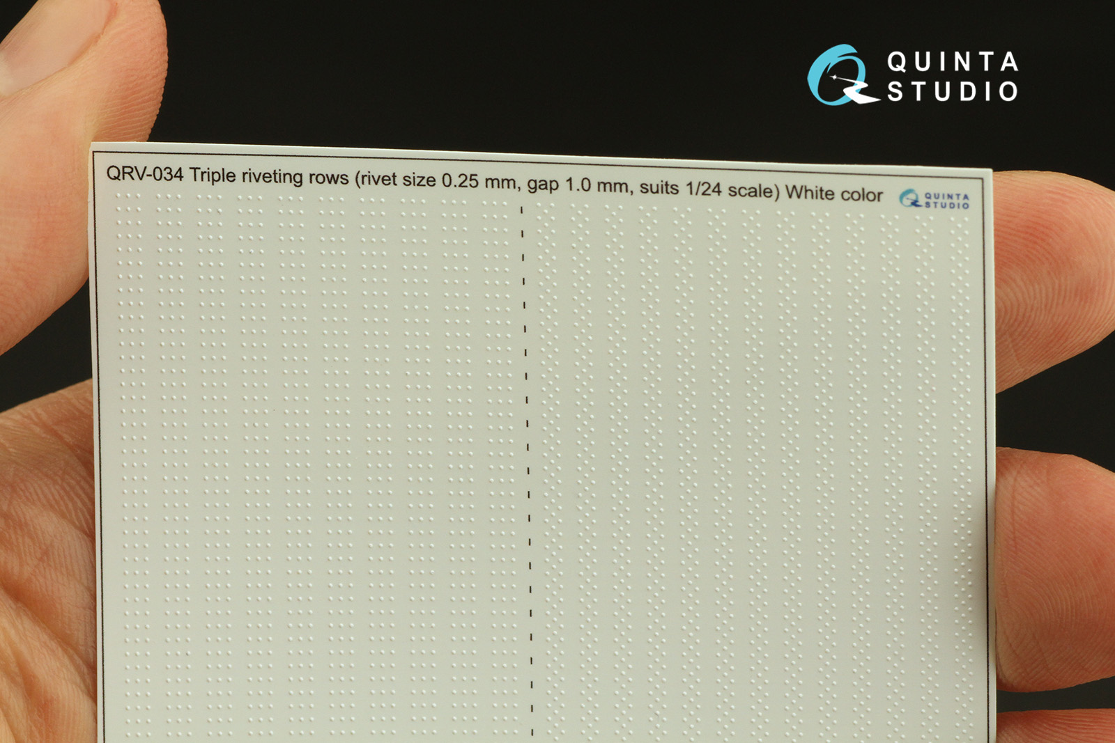 Quinta Studio - Triple riveting rows (rivet size 0.25 mm, gap 1.0 mm, suits 1/24 scale), White color, total length 3.2 m/10.5 ft