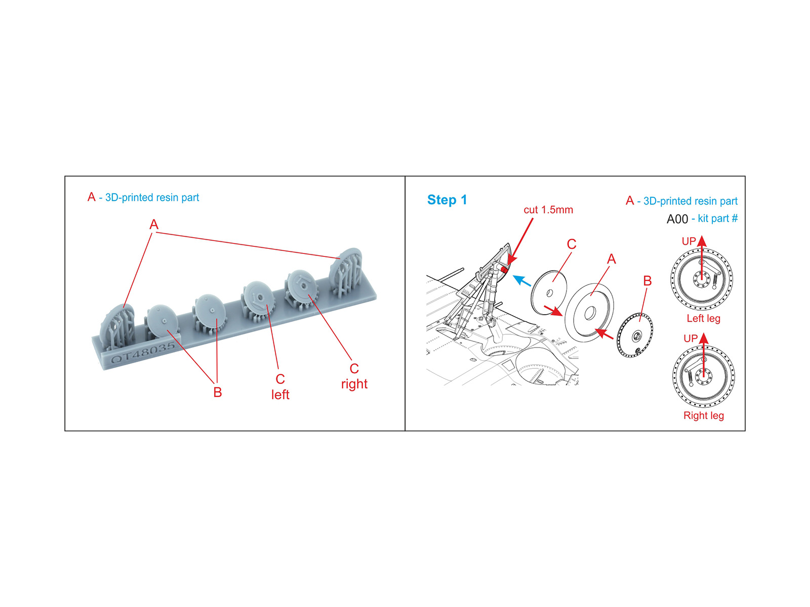 Quinta Studio - 1/48 Polikarpov I-16 Wheels early type with separate hubs and weighted tires (for Zvezda kits)