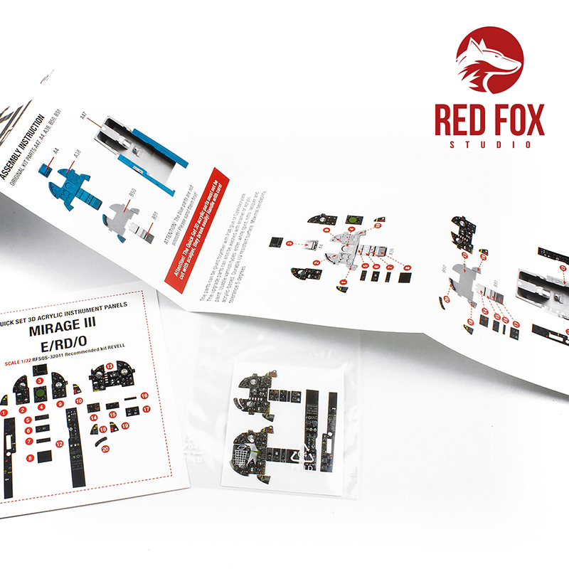 Red Fox Studio - 1/32 Dassault Mirage IIIE/RD/O Quick Set 3D Acrylic Instrument Panel (for Revell kits)