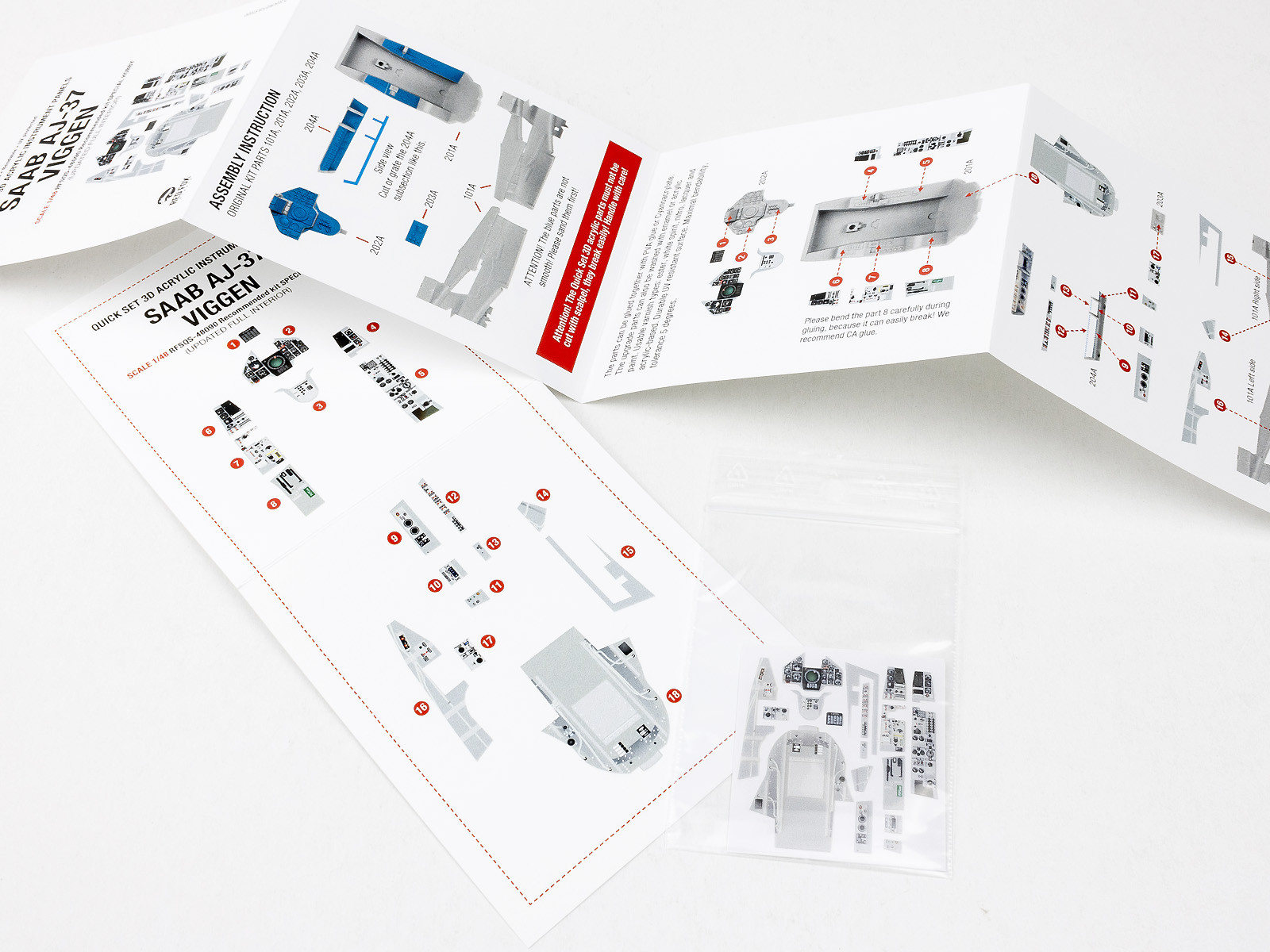 Red Fox Studio - 1/48 Saab AJ-37 Viggen Updated full interior for Special Hobby Quick Set 3D Acrylic Instrument Panel