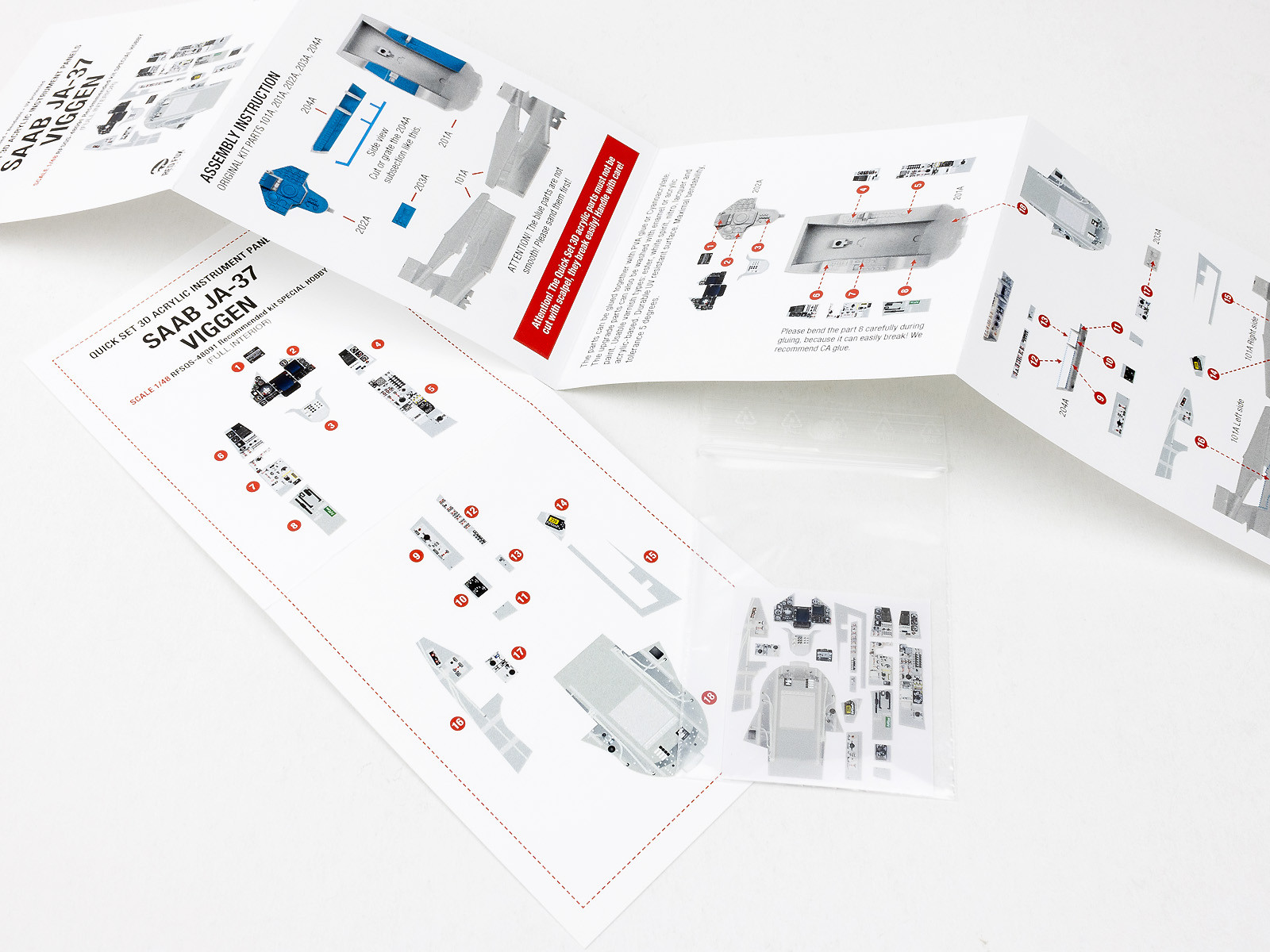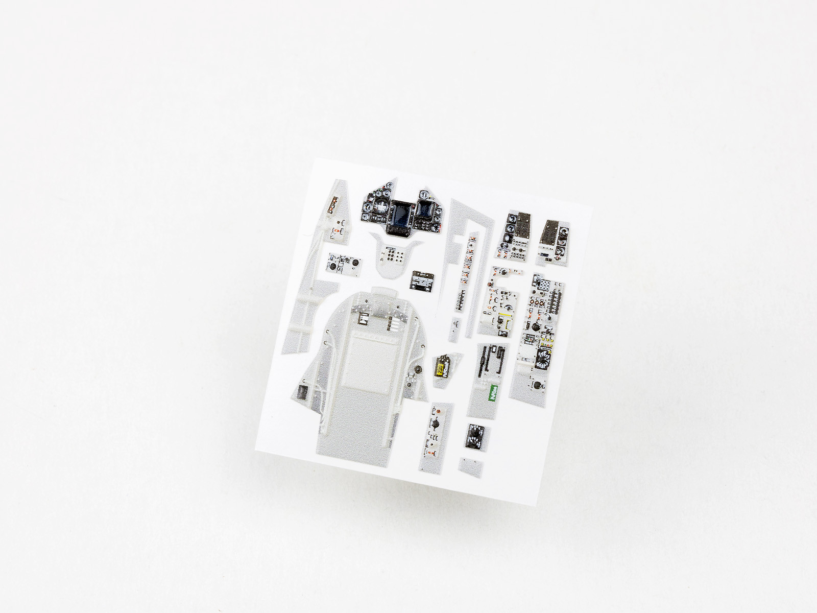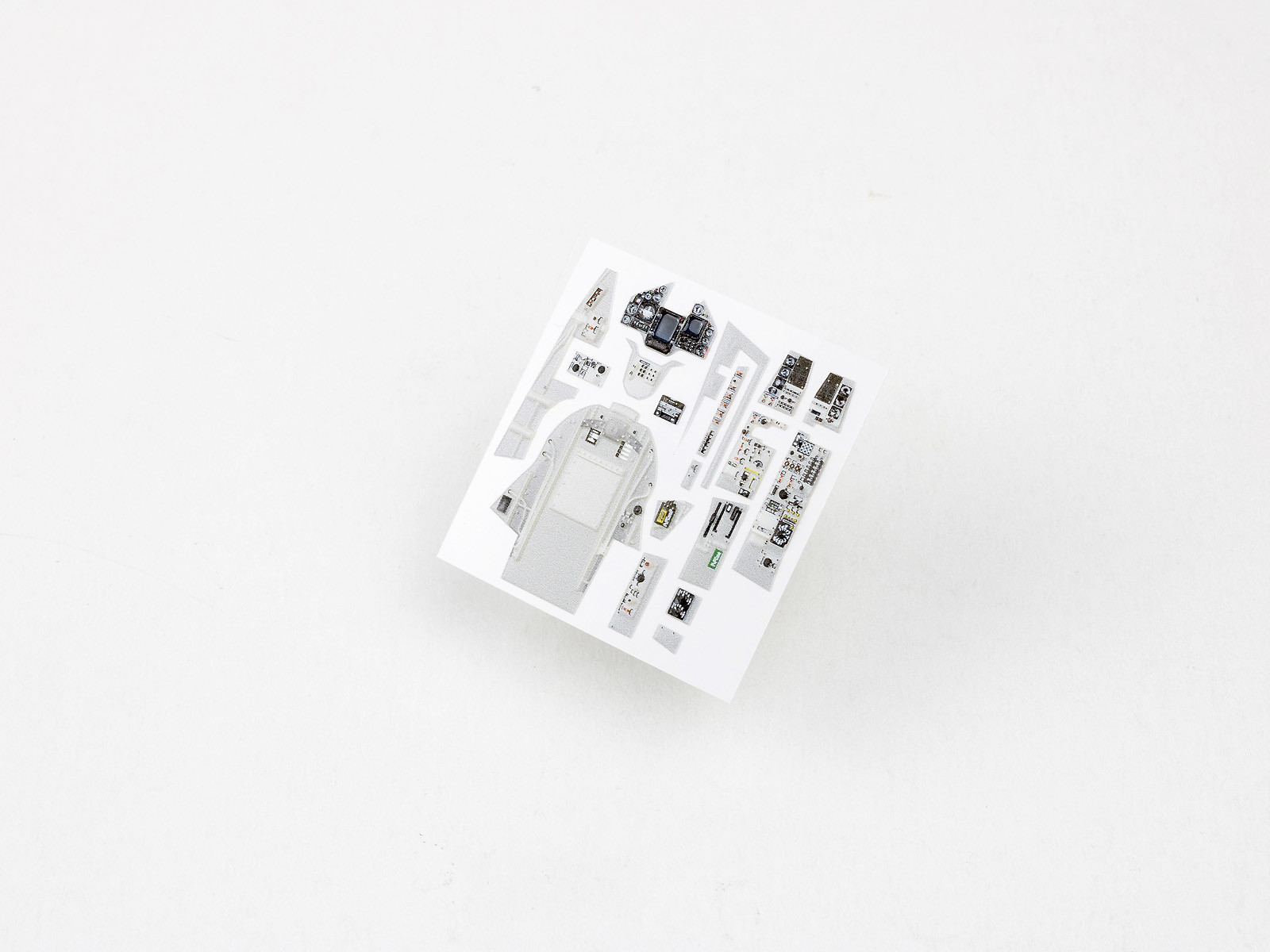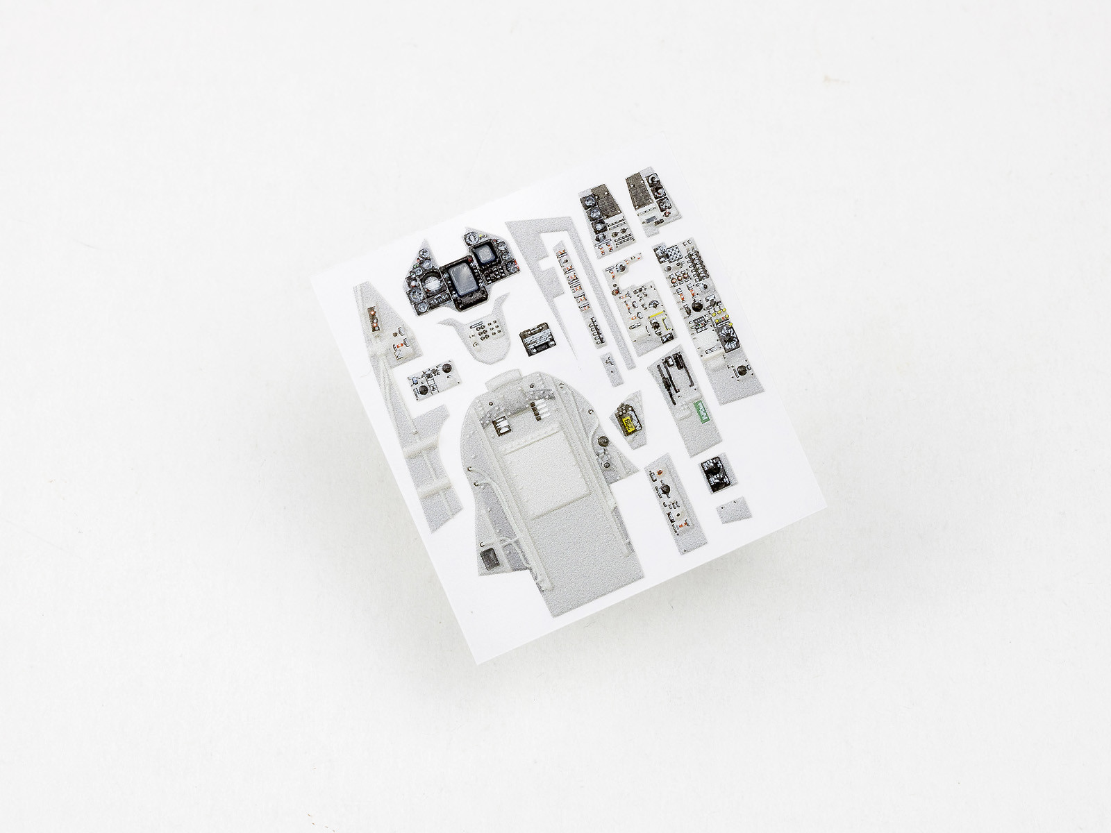 The product is suitable for upgrading model aircraft cockpits. It has a plastic, non-flat surface with a 3D effect. It is best glued with cyanoacrylate, but Pva or other glues can also be used. The product can be washed with both oil-based and acrylic paints and moderately ester-based paints. It can also be minimally bent or sanded.