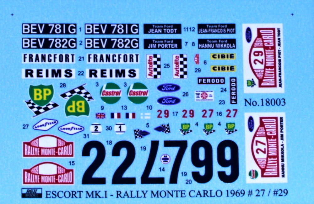 REJI MODEL - 1/18 Decal Ford Escort Mk.I RS Monte Carlo 1972