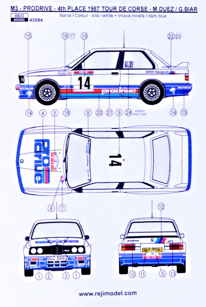 REJI MODEL - 1/43 BMW M3 1987 Rally Tour de Corse decal