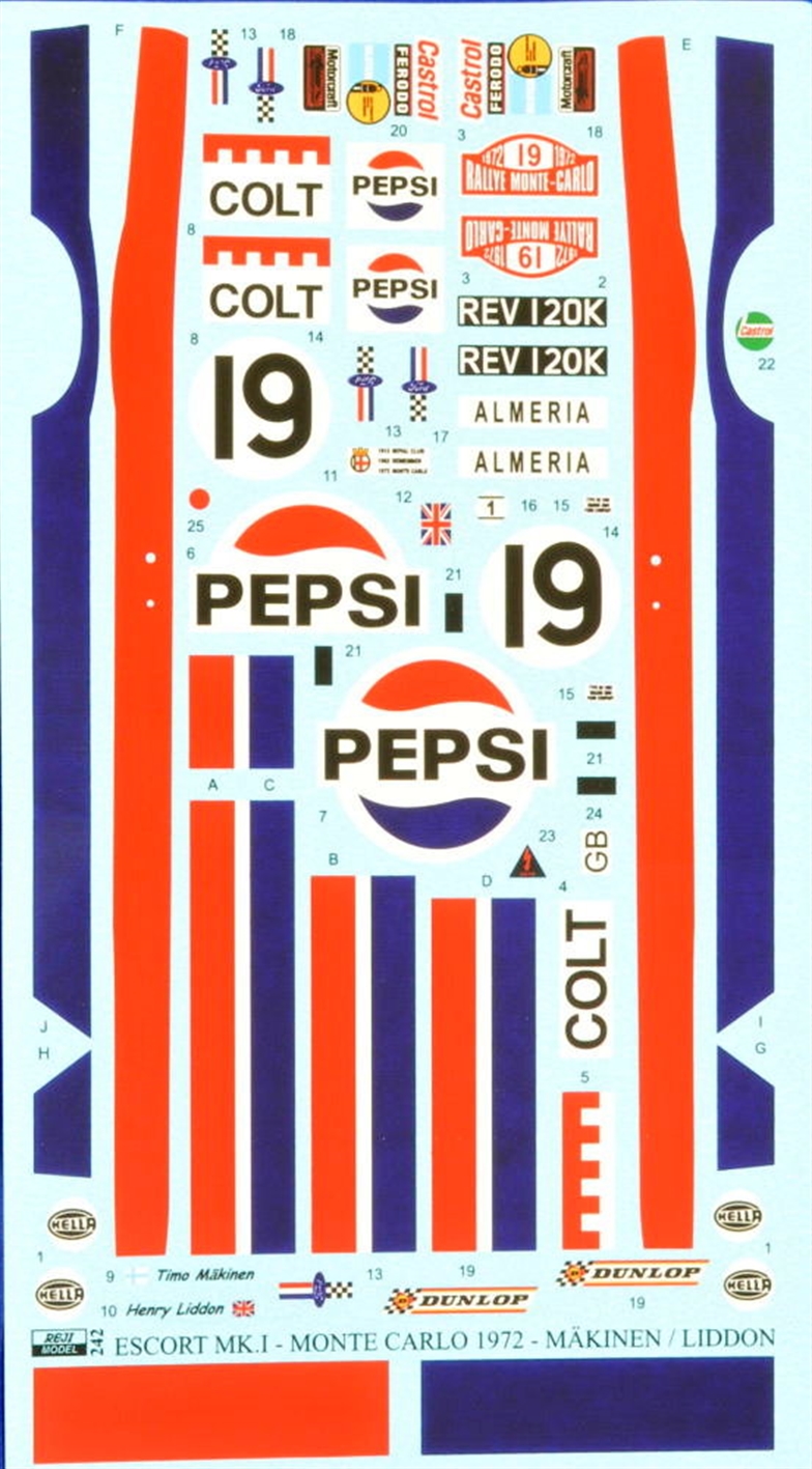 REJI MODEL - 1/24 Ford Escort Mk.I - Monte Carlo 1972 (decals & PE)