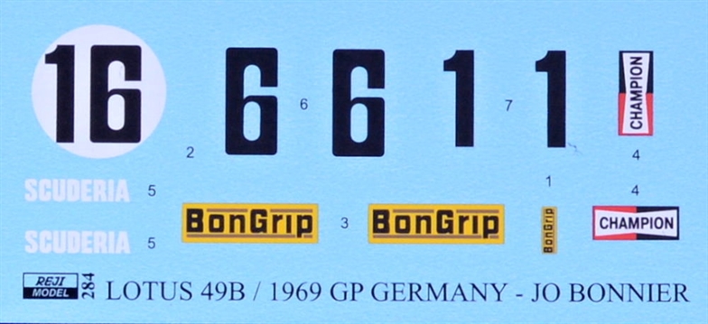 REJI MODEL - 1/20 Jo Bonnier Lotus 49B 1969 GP Germany