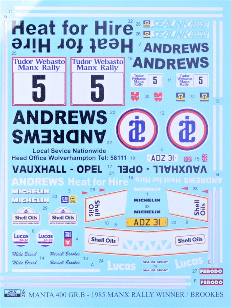 REJI MODEL - 1/24 Opel Manta 400 GR.B. 1985 Manx Rallye Winner