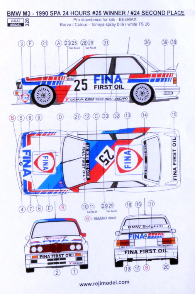 REJI MODEL - 1/24 BMW M3 EVO 24hrs SPA Winner 1990 (No.25) decal
