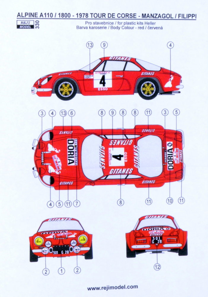 REJI MODEL - 1/24 Alpine A110 Tour de Corse 1978 (Manzagol) decal
