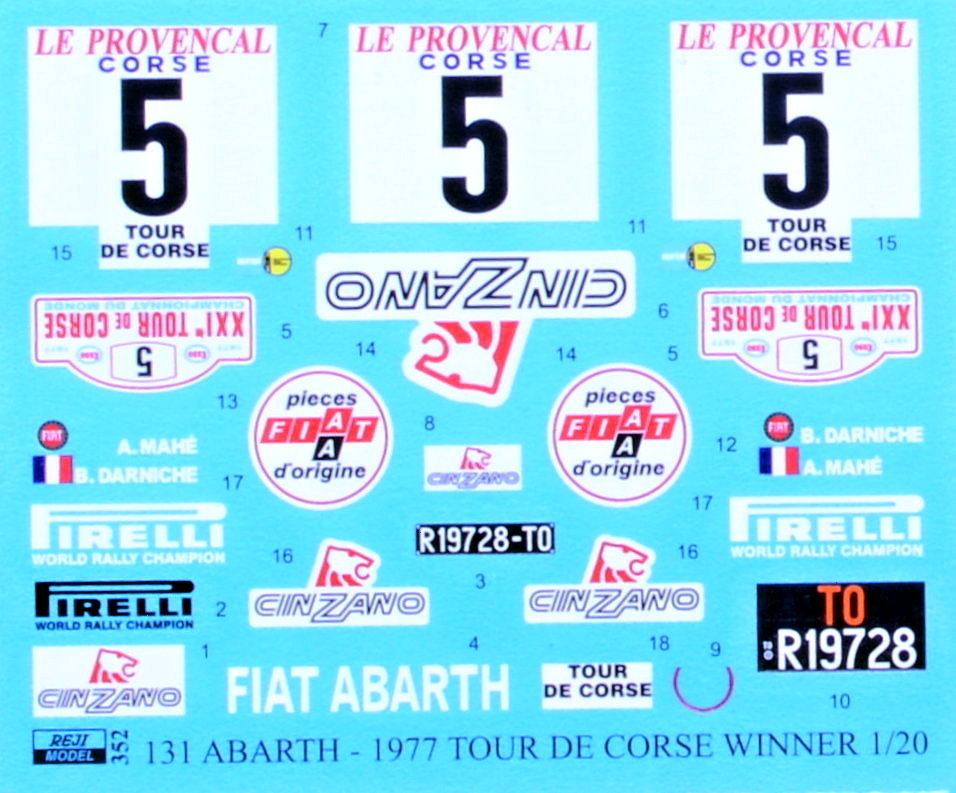 REJI MODEL - 1/20 Fiat 131 Abarth Tour de Corse 1977 Winner decal