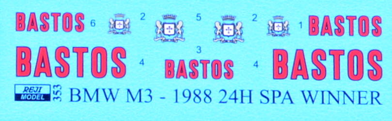 REJI MODEL - 1/24 BMW M3 Winner 1988 Spa 24 hrs BASTOS logo decal