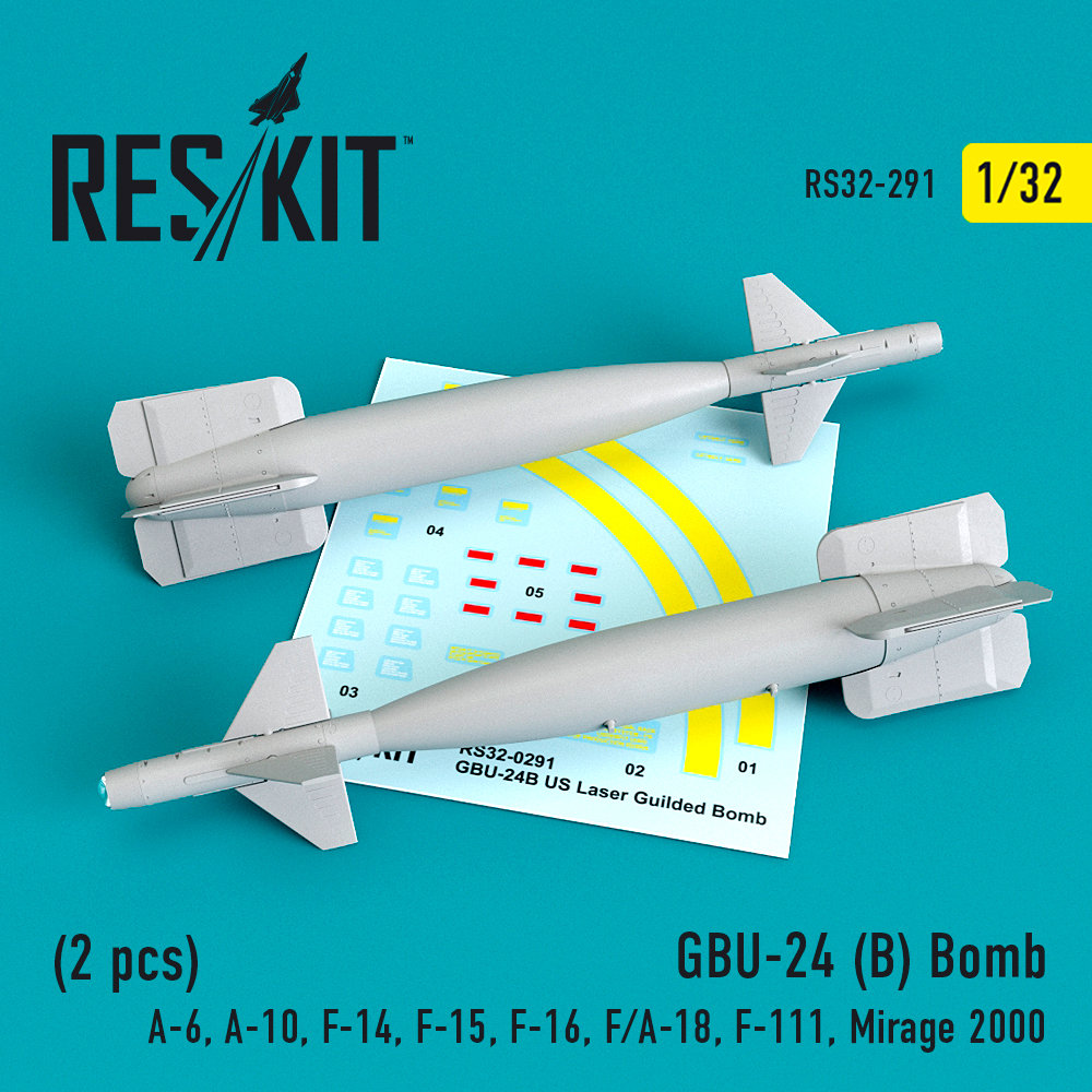ResKit - 1/32 GBU-24 (B) Bomb (2 pcs)(Grumman A-6, A-10, Grumman F-14, McDonnell F-15, F-16, F/A-18, F-111, Dassault Mirage 2000) (for Academy, Hasegawa, Italeri, Kitty Hawk Model, Revell, Trumpeter and Tamiya kits)