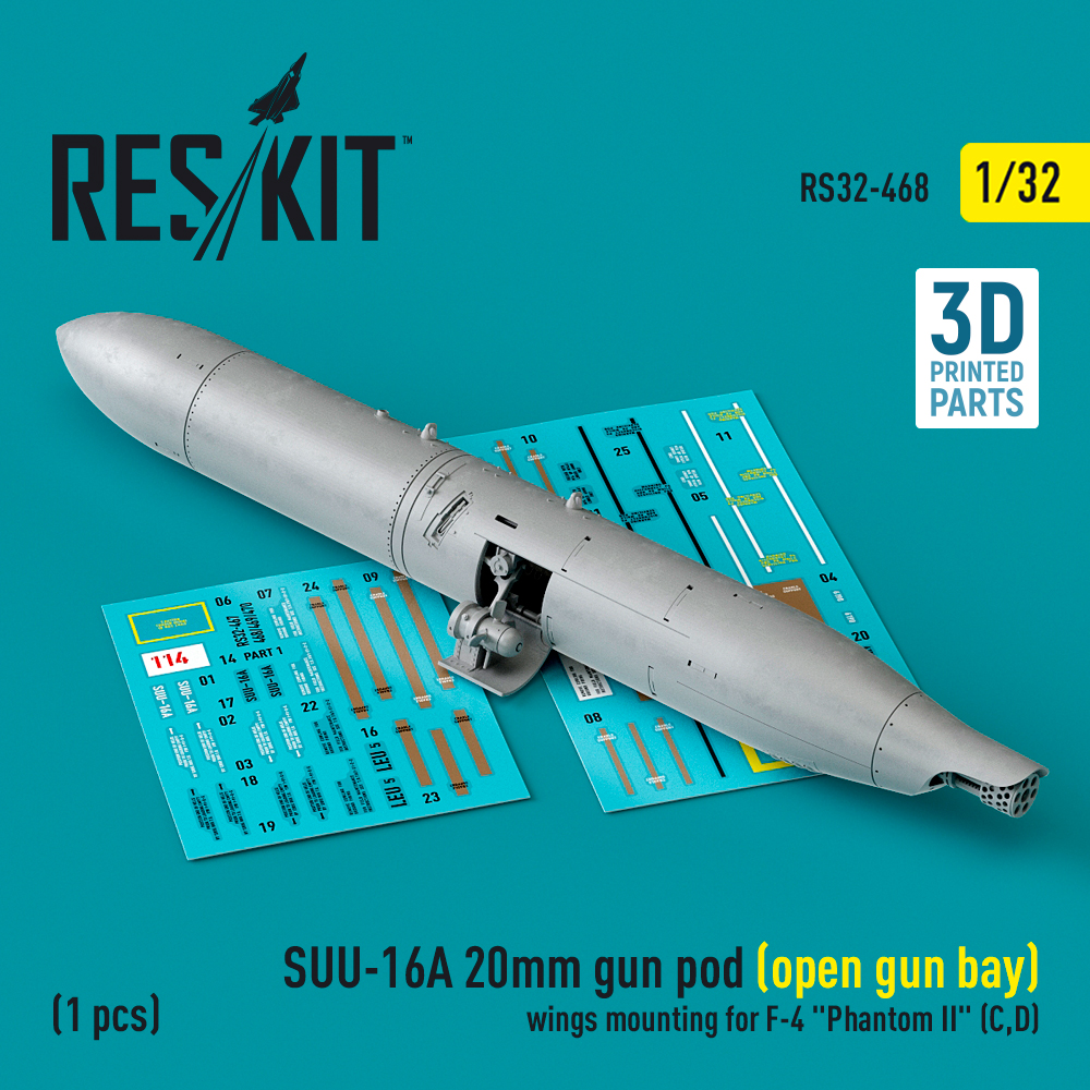 RESKIT - 1/32 SUU-16A 20mm gun pod for opened wings mounting