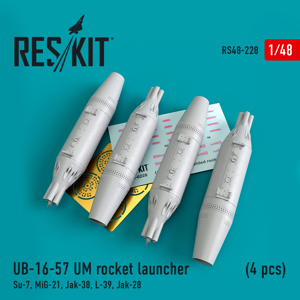 ResKit - 1/48 UB-16-57 Um rocket launcher (4 pcs) Sukhoi Su-7, Mikoyan MiG-21, Yakovlov ak-38, Aero L-39, Jak-28 (for Eduard, Hobby Boss, Smer and Trumpeter kits)