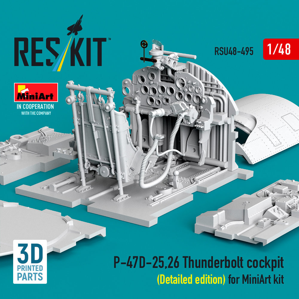 Set in resina RESKIT per migliorare il cockpit del P-47D-25/26 Thunderbolt, compatibile con il kit Miniart 1/48.