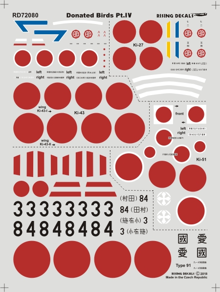 Rising Decals - 1/72 Donated Birds Pt.IV - Japanese Army Aircraft with Patriotism Inscriptions Aikoku