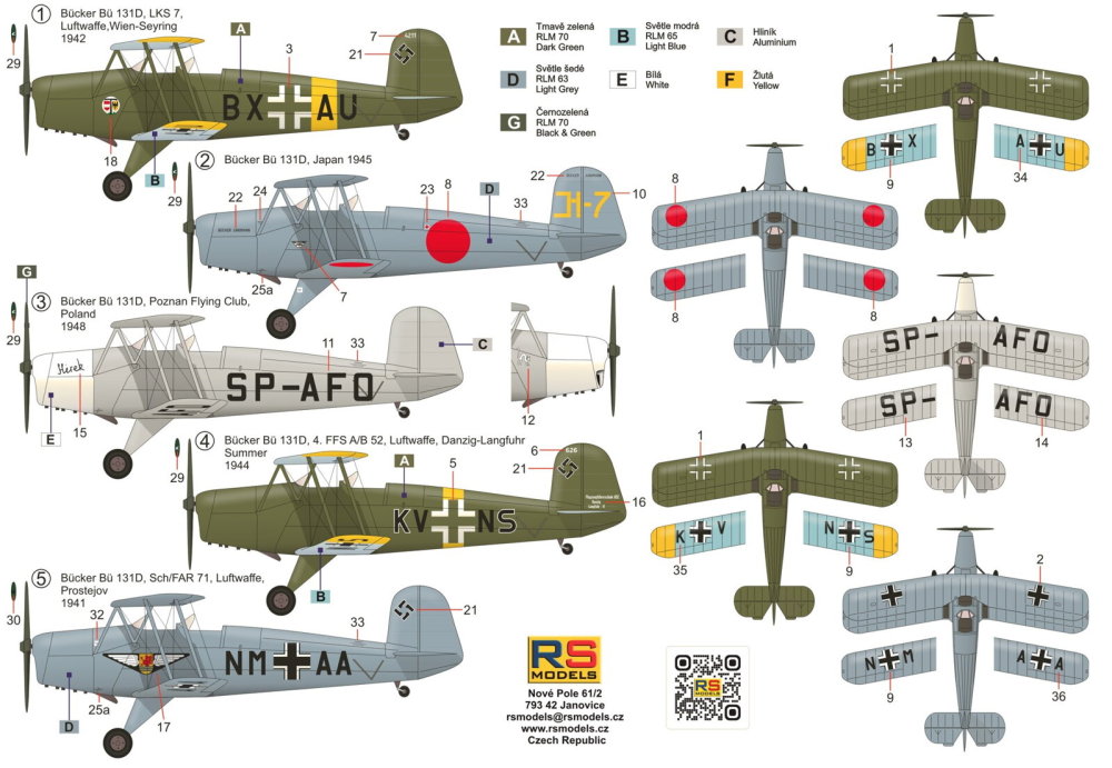 RS Models - 1/48 Bucker Bu-131D 5 decal options for Luftwaffe, Japan and Poland