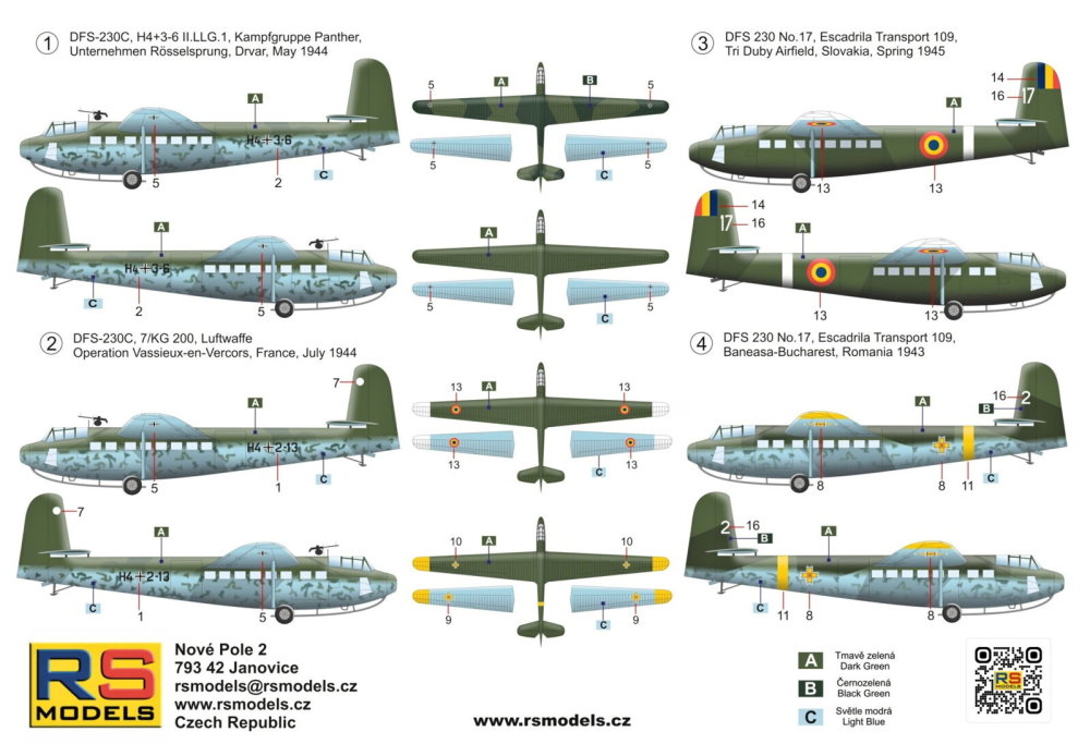 RS Models - 1/72 DFS-230 Unternehmen Rösselsprung 4x camouflages