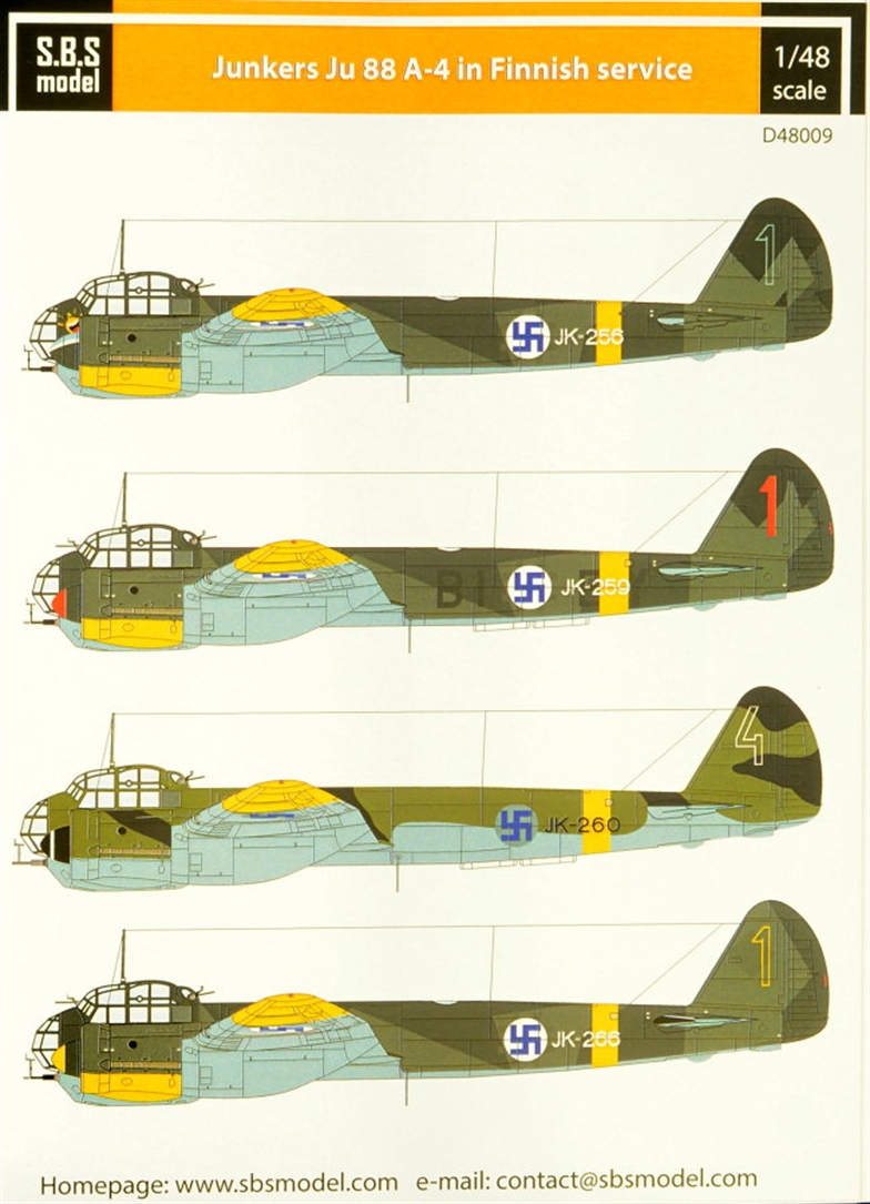 SBS MODEL - 1/48 Decal Junkers Ju 88 A-4 in Finnish service