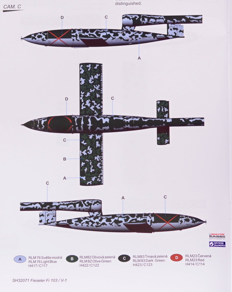 Special Hobby - 1/32 Fieseler Fi-103/V-1 A model of the German unmanned missile, the infamous V-1 flying bomb which was designed and used for terror bombing of London and the UK. When the Allies invaded France, the missiles were also aimed at Antwerp, Liege and Brussels, both from land-based launch sites and aircraft.