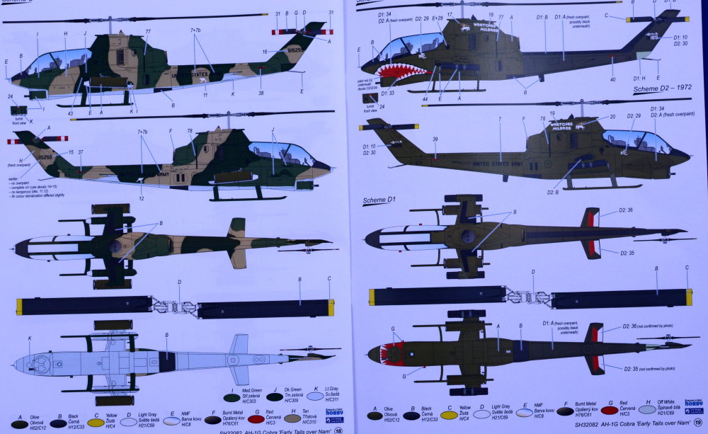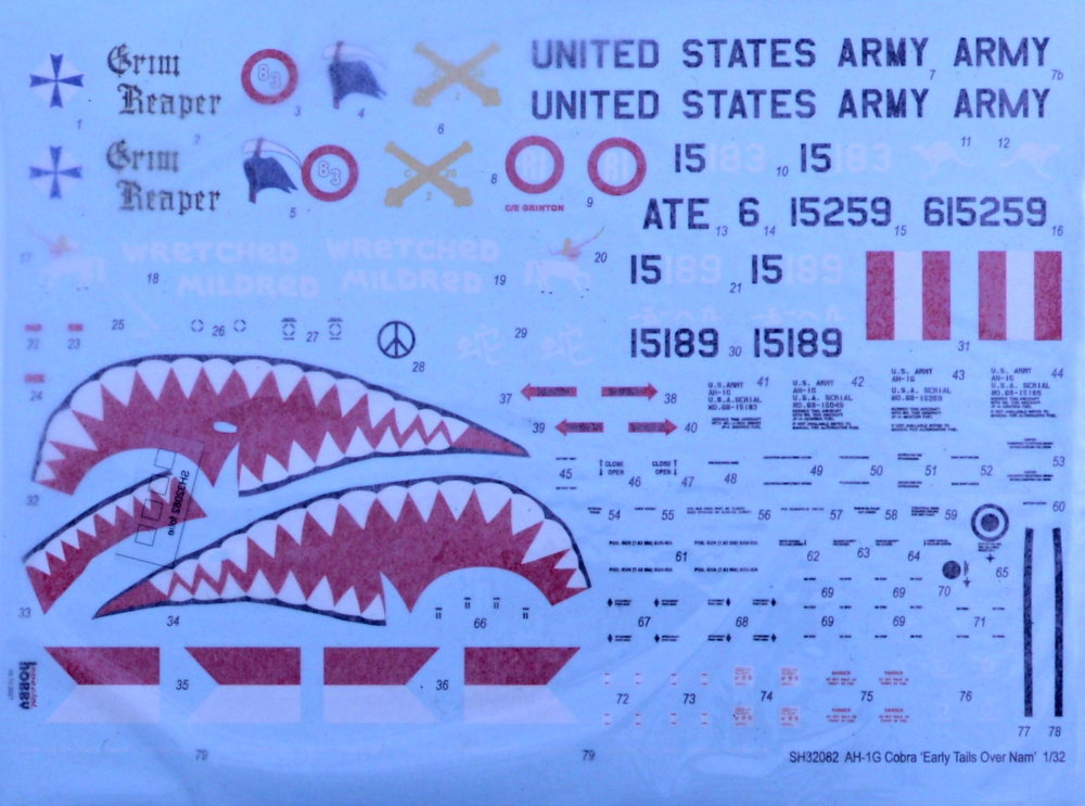 Decal sheet with markings for four Vietnam-based machines, including accurately reproduced servicing stencils.