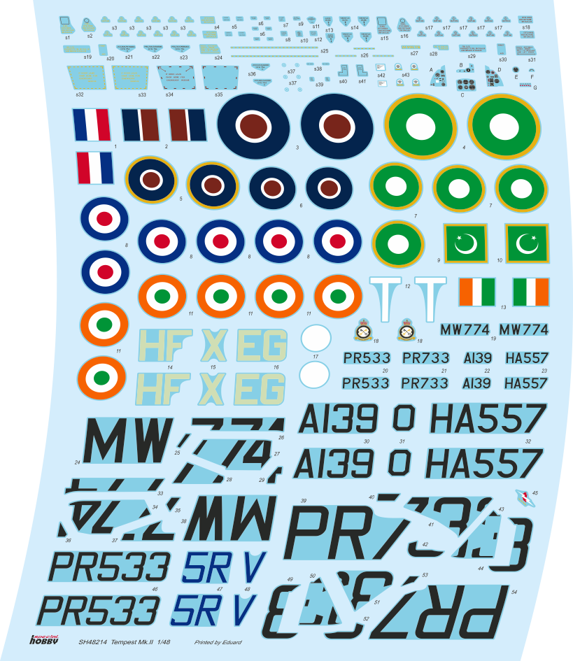 Special Hobby - 1/48 Hawker Tempest Mk.II 'Hi-Tech' (prepared with Eduard) The Tempest Mk.II was the last radial engine fighter aeroplane to introduced to service with the RAF. The type had been developed for the planned atack against Japan in the closing stages of the war. But using the atomic bombs by the Americans meant an end to those plans and the Tempest Mk.II was deployed in a couple of post-war era conflicts instead. Bearing Raf colours, it fought the China-backed Malayan communist insurgents in the 1950s. They also fought in the Indo-Pakistani wars.