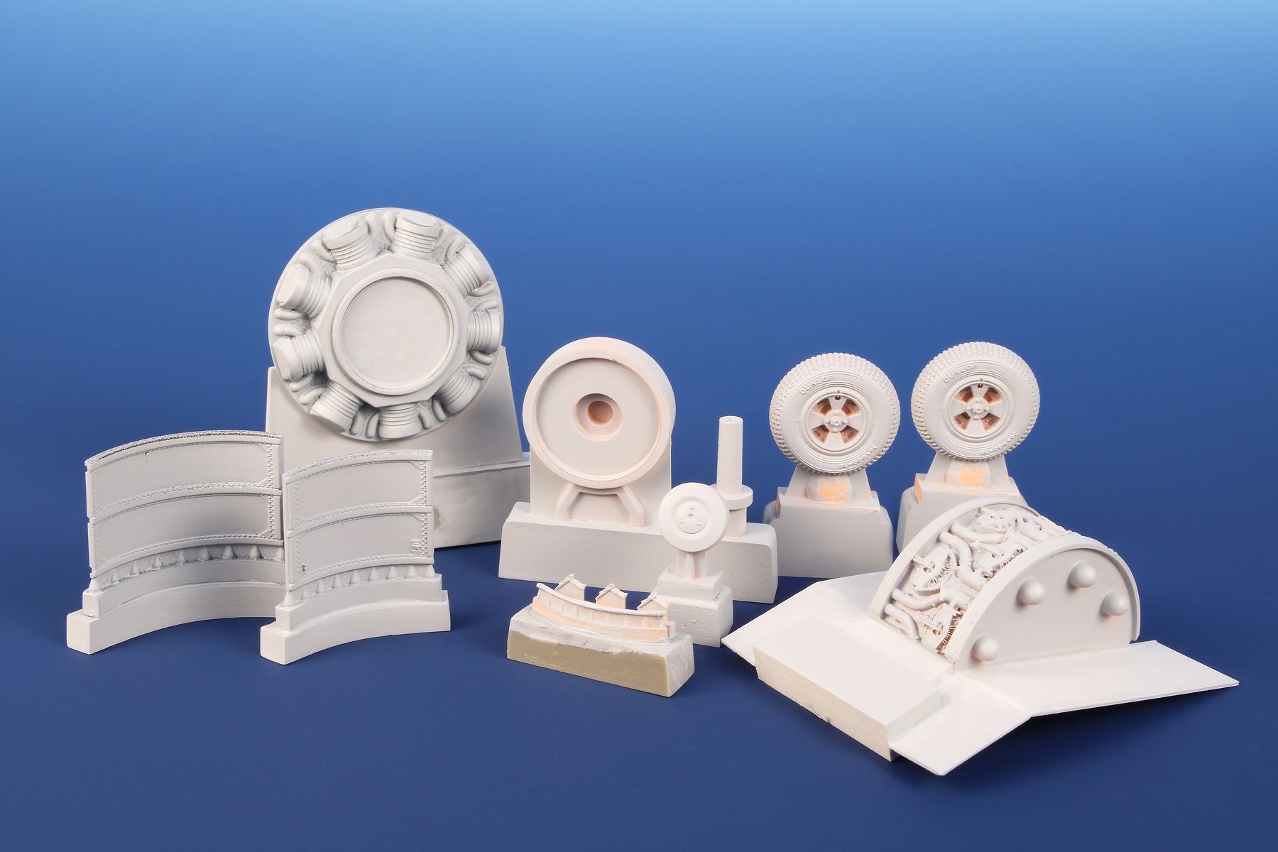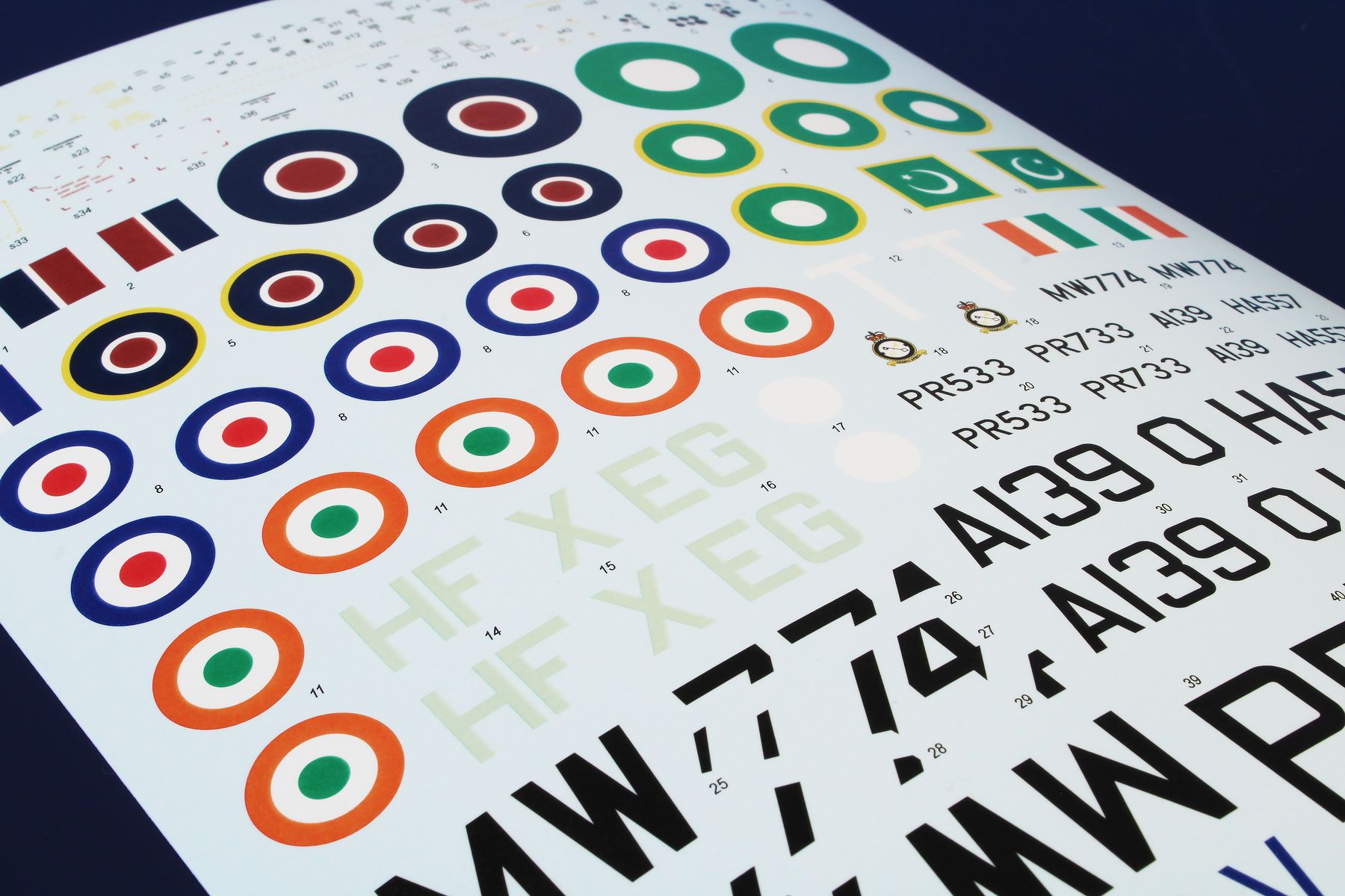 Our model of the Tempest Mk.II has been prepared in cooperation with Eduard. It contains seven styrene sprues and a clear parts sprue. The kit is topped up with a handful of resin items resin undercarriage wheels, a partial replica of the engine with the covering panels, plus the necessary photo etches and painting masks. The decal sheet offers markings for five schemes three as flown with the RAF, two of which are camouflaged and one in aluminium overall, then we have a Pakistani camouflaged machine and an Indian one in aluminium lacquer finish.