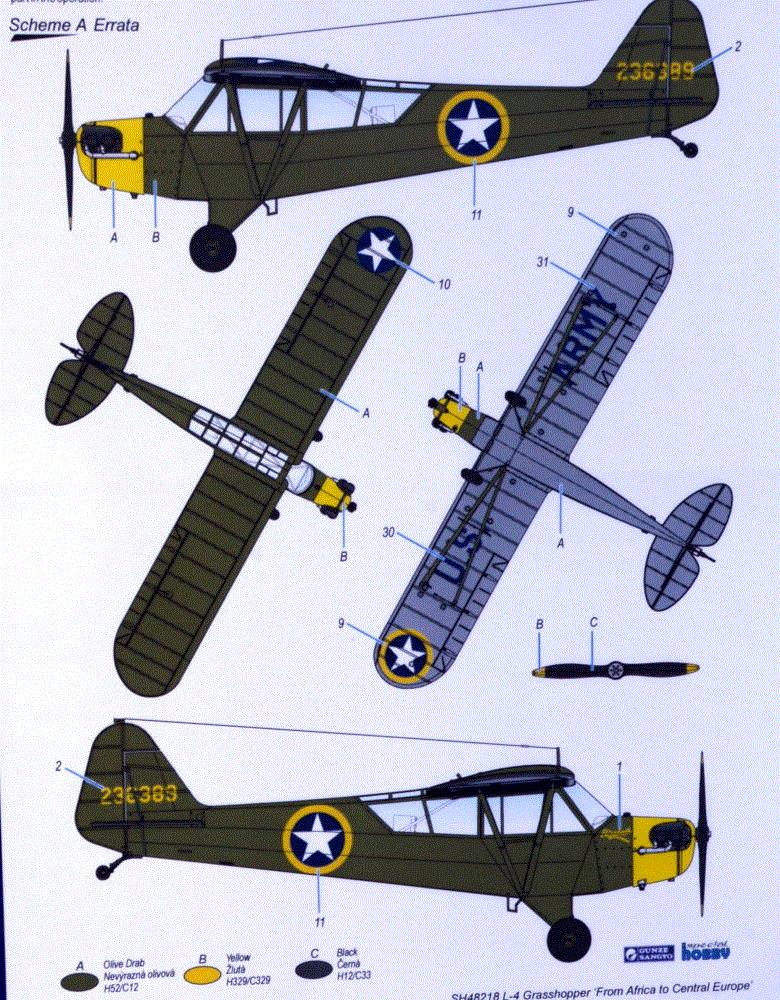 Special Hobby - 1/48 Piper L-4 Grasshopper 'From Africa to Central Europe. It quite soon became clear to the US military, as well as the British RAF, that the rather large and complicated types such as the O-47 or Lysander which had been designed in the pre-war days for army co-operation, close support, artillery observation and liaison roles were in fact ill-suited for the real operations. Lighter types with the ability of very short take offs and landings proved much more successful. And arguably the most famous of all types of this category is the L-4 Grasshopper, developed from the originaly civil J-3 Cub which did really well during US.Army pre-war excercises.