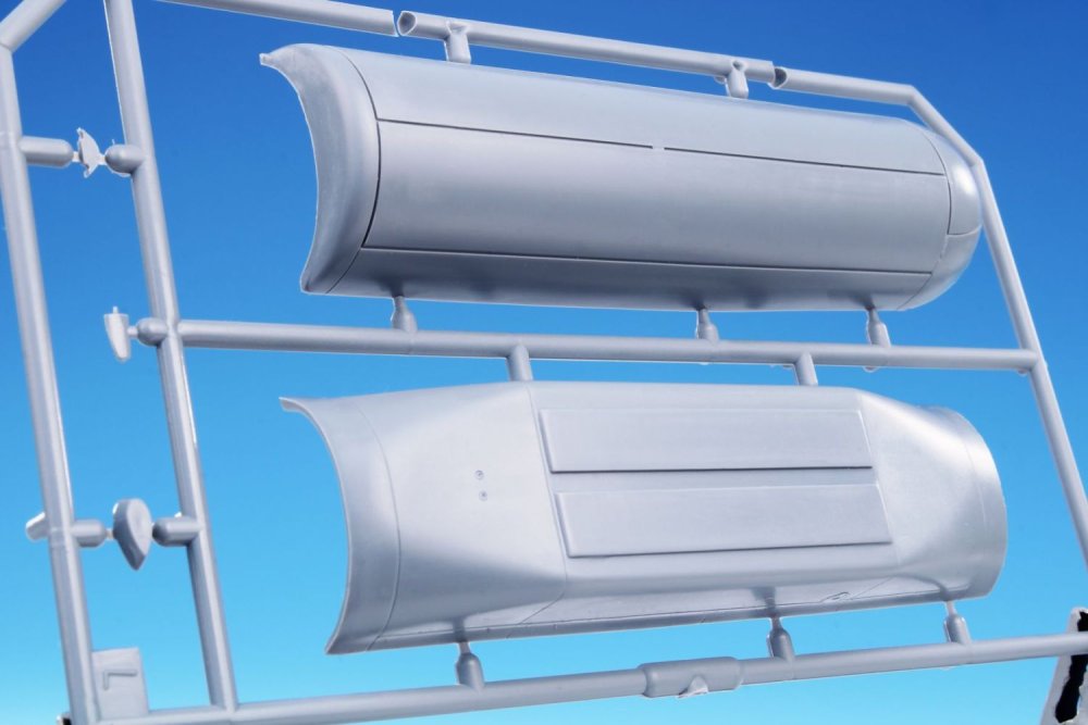 The kit consists of Xx grey styrene sprues, one with clear parts, a set of Pur parts and a fret of etches. There are also two styles of the water tanks available and the decal sheet caters for makrings of a trio of machines.