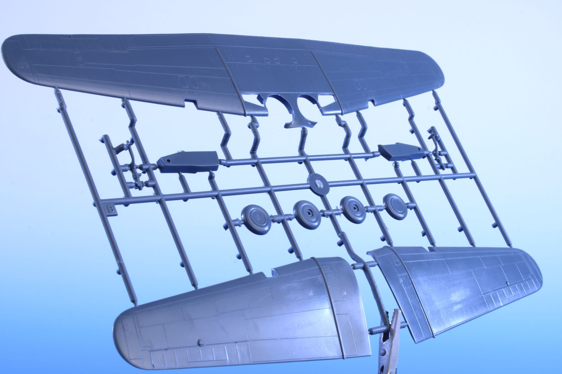 The kit comes on three styrene sprues, one with clear parts, it also contains a set of resin cast parts, etches and a decal sheet wiht markings for two machines, one of which was flown in norhtern Australia, coloured yellow overall and with large number on the fuse, the other one was operated in New Guinea in a green scheme with white empennage.