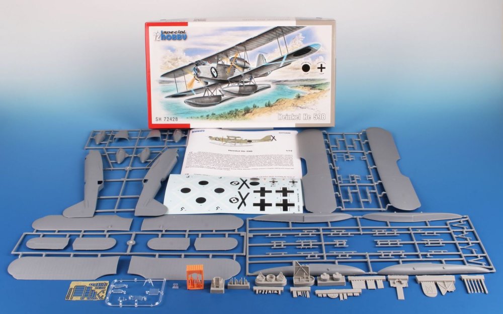Special Hobby - 1/72 Heinkel He-59B This of the Heinkel He 59B is suitable for more experienced modellers. It contains four grey styrene sprues, resin cast parts and a fret of etches. The resin parts have been designed anew now as well as the clear plastic ones which replace the original vacuum-formed items. The decal sheet brings markings for a Legion Condor machine flying over Spain during the civil war and a machine in the colours of the German Luftwaffe in 1942.
