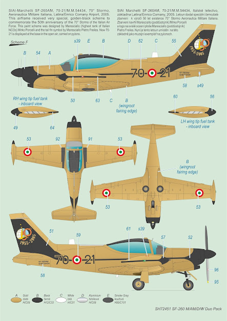 Special Hobby - 1/72 SIAI-Marchetti SF-260 Duo Pack & Book. This kit is another one of the Duo Pack & Book format and brings, as is rather clear from the title of the series, two complete SF-260 models accompanied by a book on the subject prepared by the guys at H.M.H. Publication. The models offer both styles of the clear canopy, the standard one as well as the later, larger type, and also the underwing armament for the SF-260W version. The decals come with markings for airframes flown by the airforces of Italy, Belgium, Southern Rhodesia, Thailand, Turkey, Libya and one civil operator in the USA.