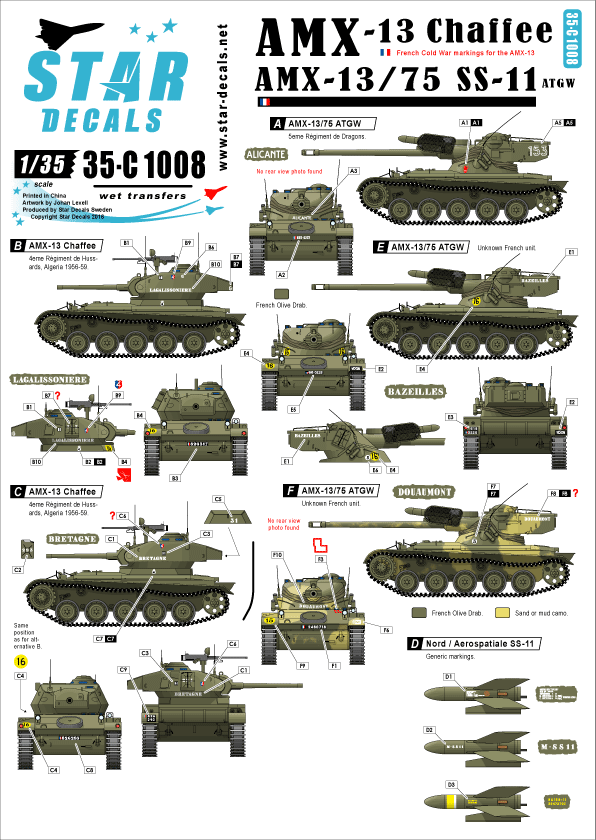Star Decals - 1/35 AMX-13 Chaffee & AMX-13 SS-11. French Cold War markings + Algerian war