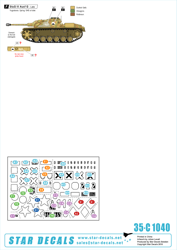 Star Decals - 1/35 Axis/Eastern Europe StuG III #2. Bulgaria, Spain, Italy, Yugoslavia.