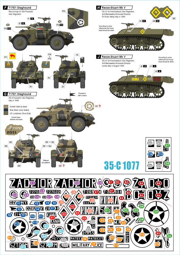Star Decals - 1/35 Firefly, Stuart, Halftrack, Willys Jeep, Staghound. Polish Tanks in Italy 1943-45. 2nd Armoured Bde, 2nd Warsawska Div. (was Bison decal 35049)