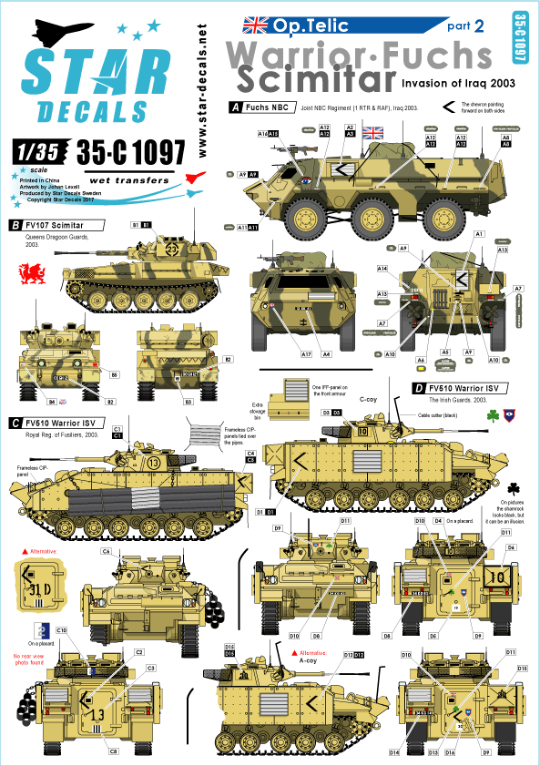 Star Decals - 1/35 Operation Telic # 2. Warrior ISV, Warrior ICV, Fuchs NBC and Scimitar. Invasion of Iraq 2003.