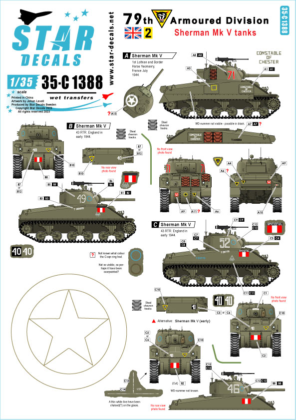 Star Decals - 1/35 Sherman Mk V tanks.